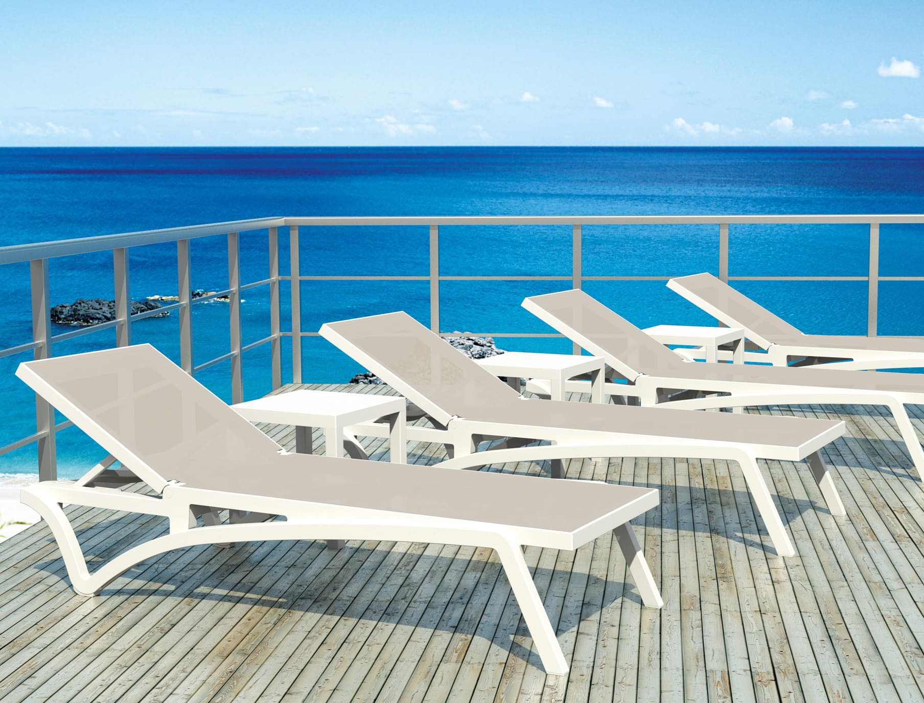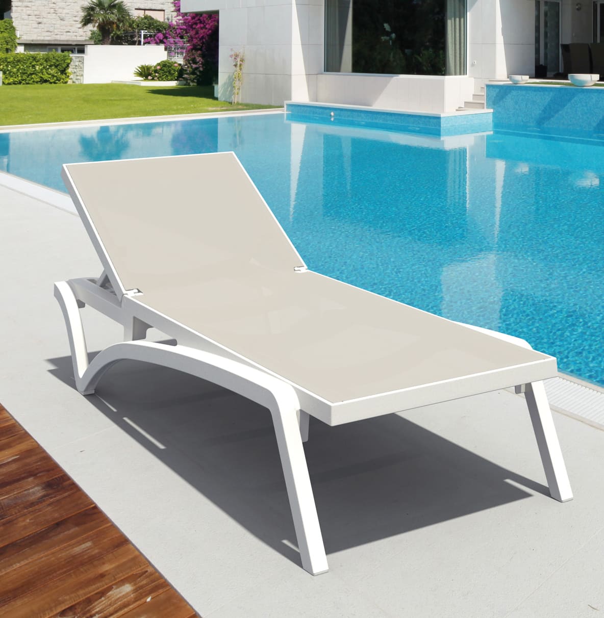 Шезлонг Siesta Pacific Білий/бежевий (White Taupe) - це сучасна модель для комфортного відпочинку біля басейну, на терасі або в саду. Конструкція виготовлена з поліпропілену, що забезпечує високу міцність та стійкість до зовнішніх умов.