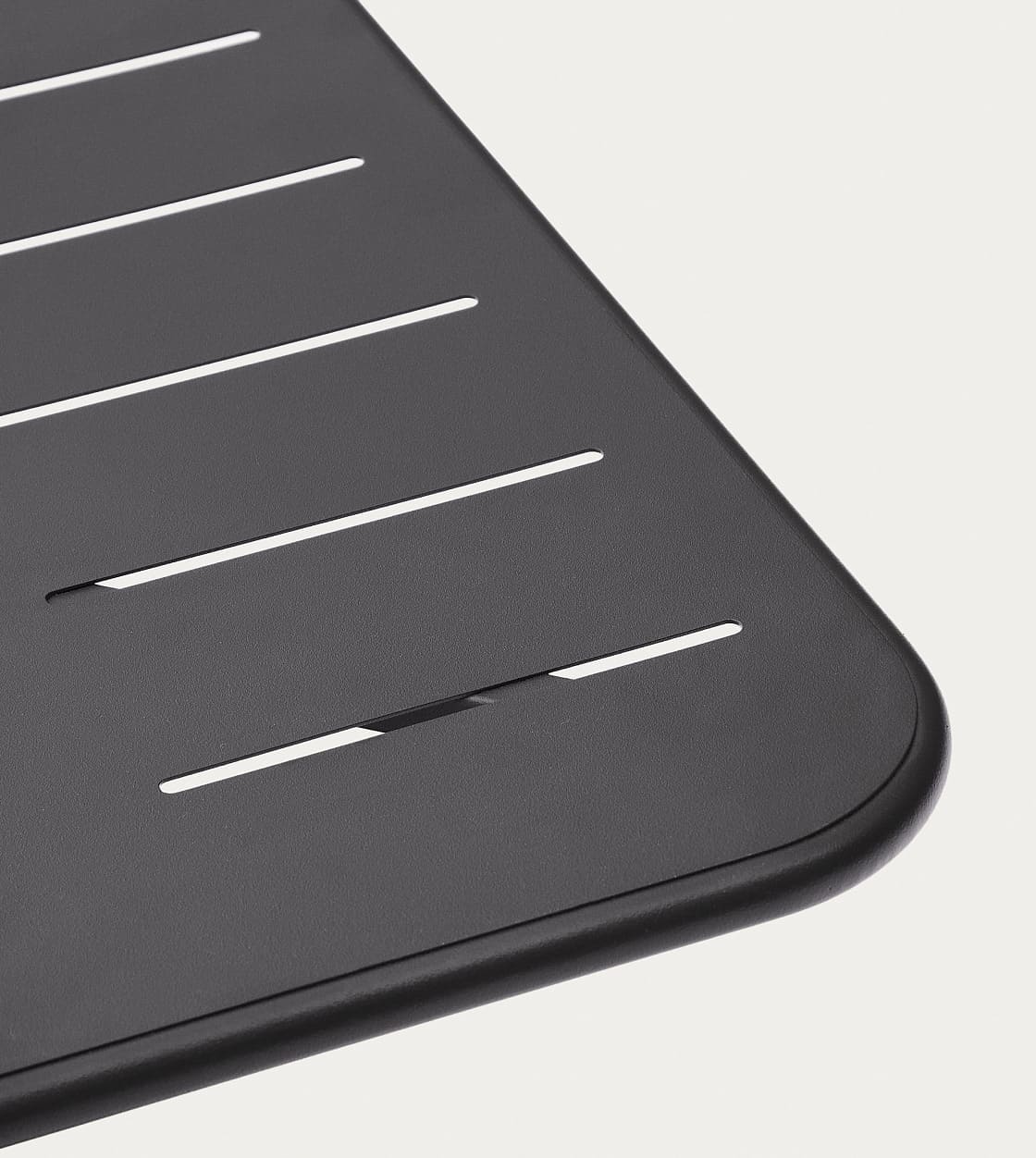 - Стіл з оцинкованої сталі з темно-сірим покриттям.
