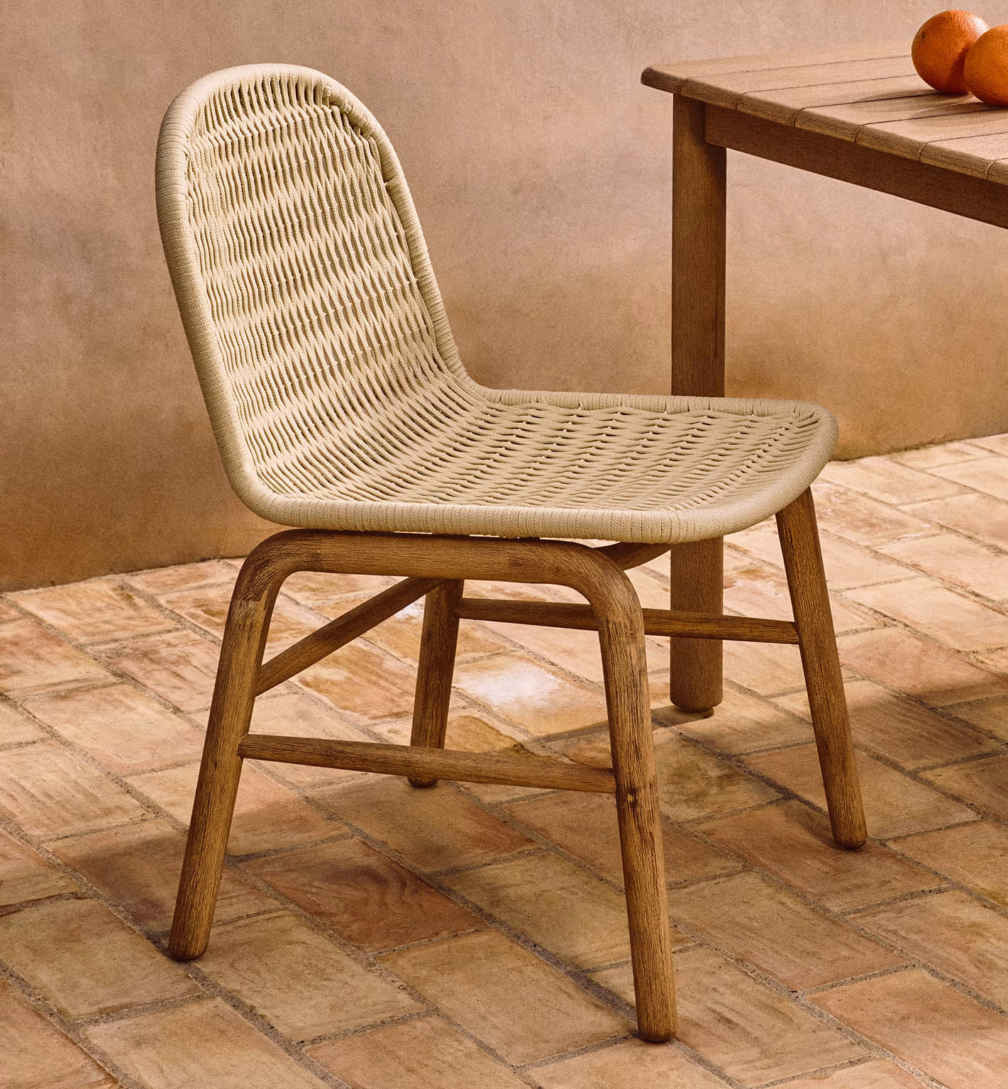 Вуличний стілець Kave Home Alipa , масив акації та плетений шнур екрю (FSC 100%) - стильне та натуральне рішення, яке гармонійно доповнює простір тераси, саду або балкона та чудово вписується в сучасний інтер’єр будинку.