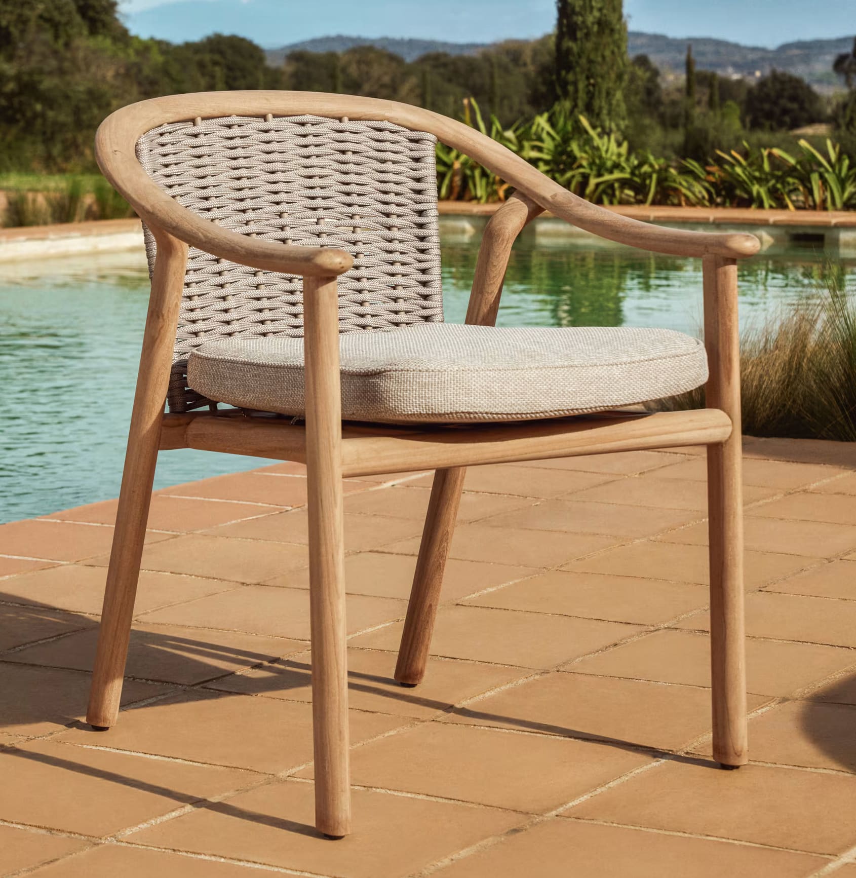 Стілець садовий Elunda C00226RO12 з масиву тику - це поєднання преміального дизайну, надійності та комфорту для облаштування тераси, саду або веранди.