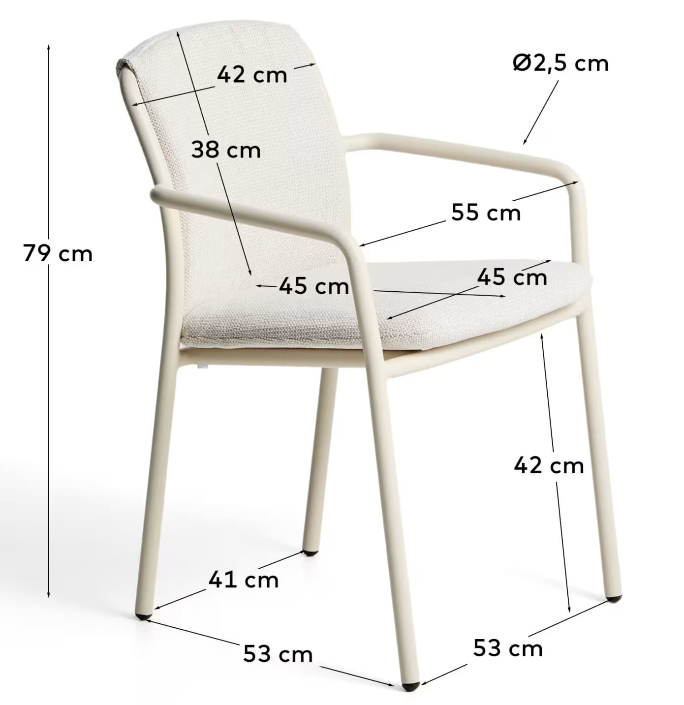 Сучасний вуличний стілець Linosa від Kave Home – це універсальне рішення для тераси, балкону, саду, кухні чи ресторану. Легкий алюмінієвий каркас у поєднанні з м'яким сидінням та спинкою забезпечує комфорт, стійкість та сучасний зовнішній вигляд.