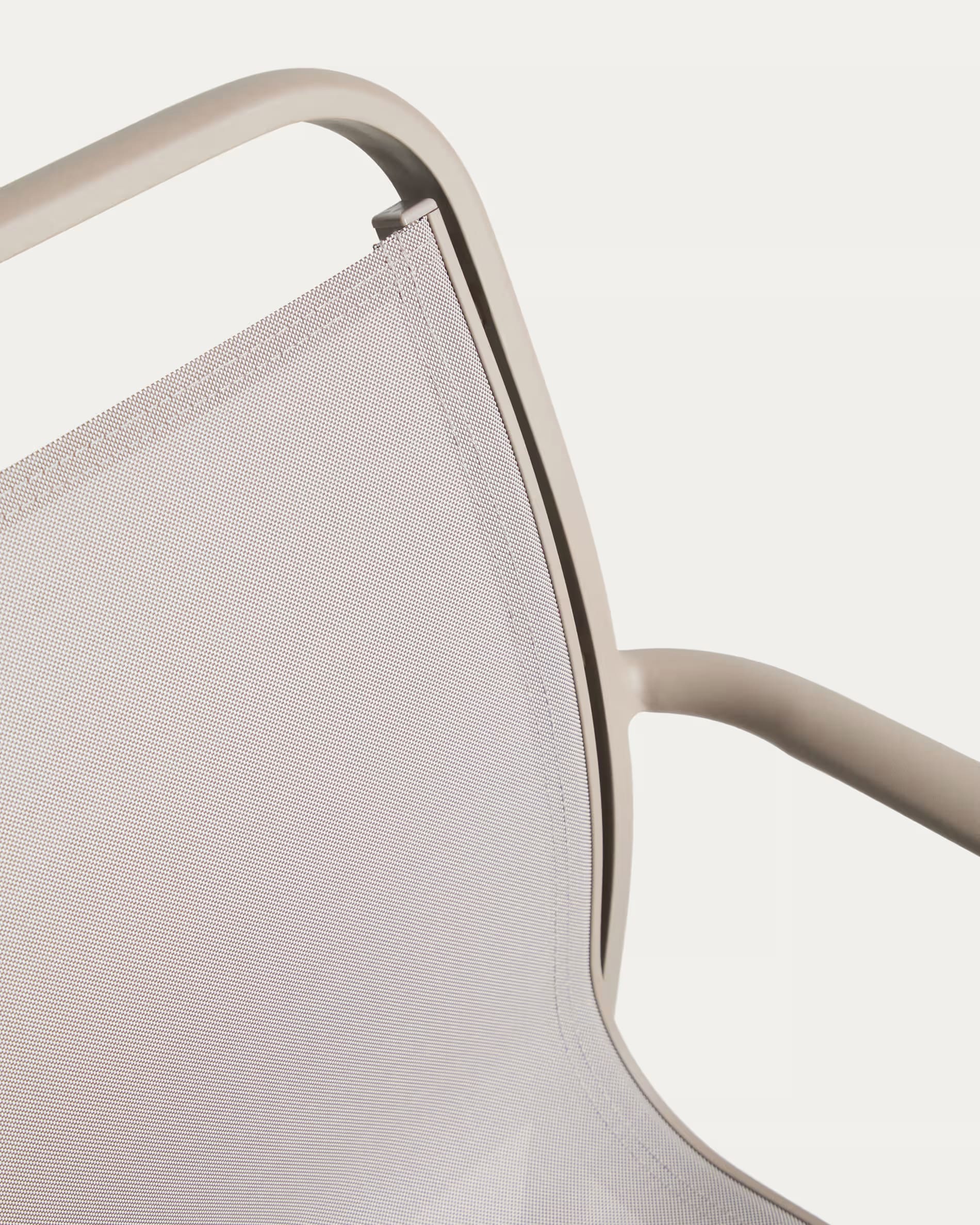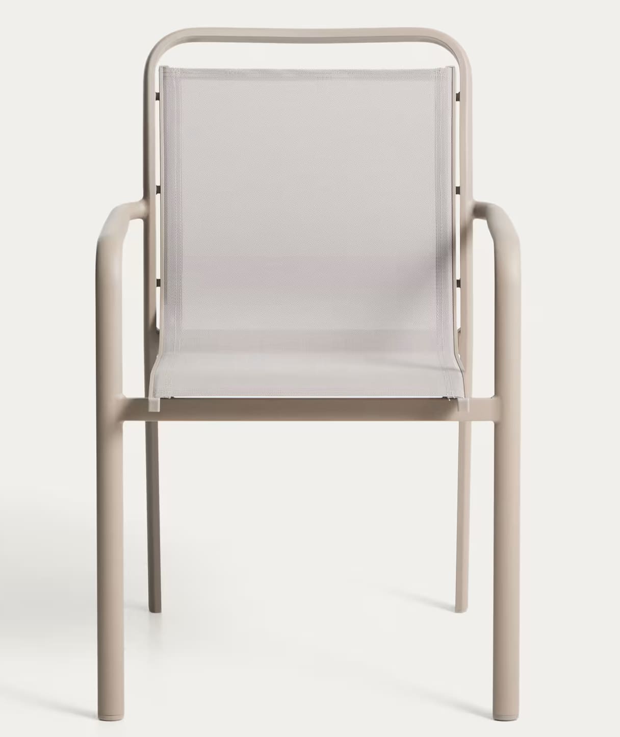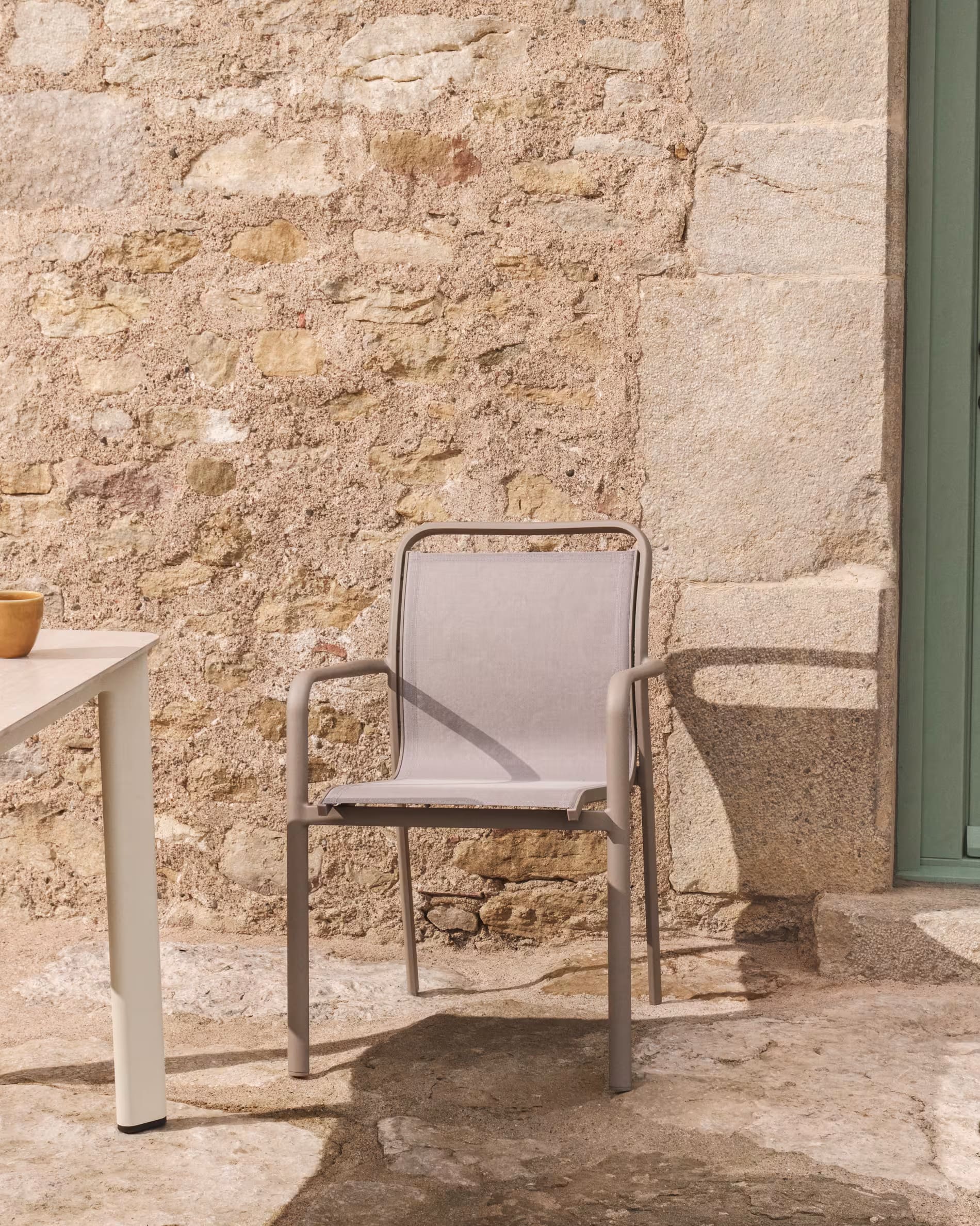 Сучасний вуличний стілець Luri від Kave Home – це практичне та універсальне рішення для тераси, балкону, саду, кухні чи ресторану. Легкий алюмінієвий каркас у поєднанні з сидінням та спинкою з texteline забезпечує комфорт, міцність та сучасний зовнішній вигляд.