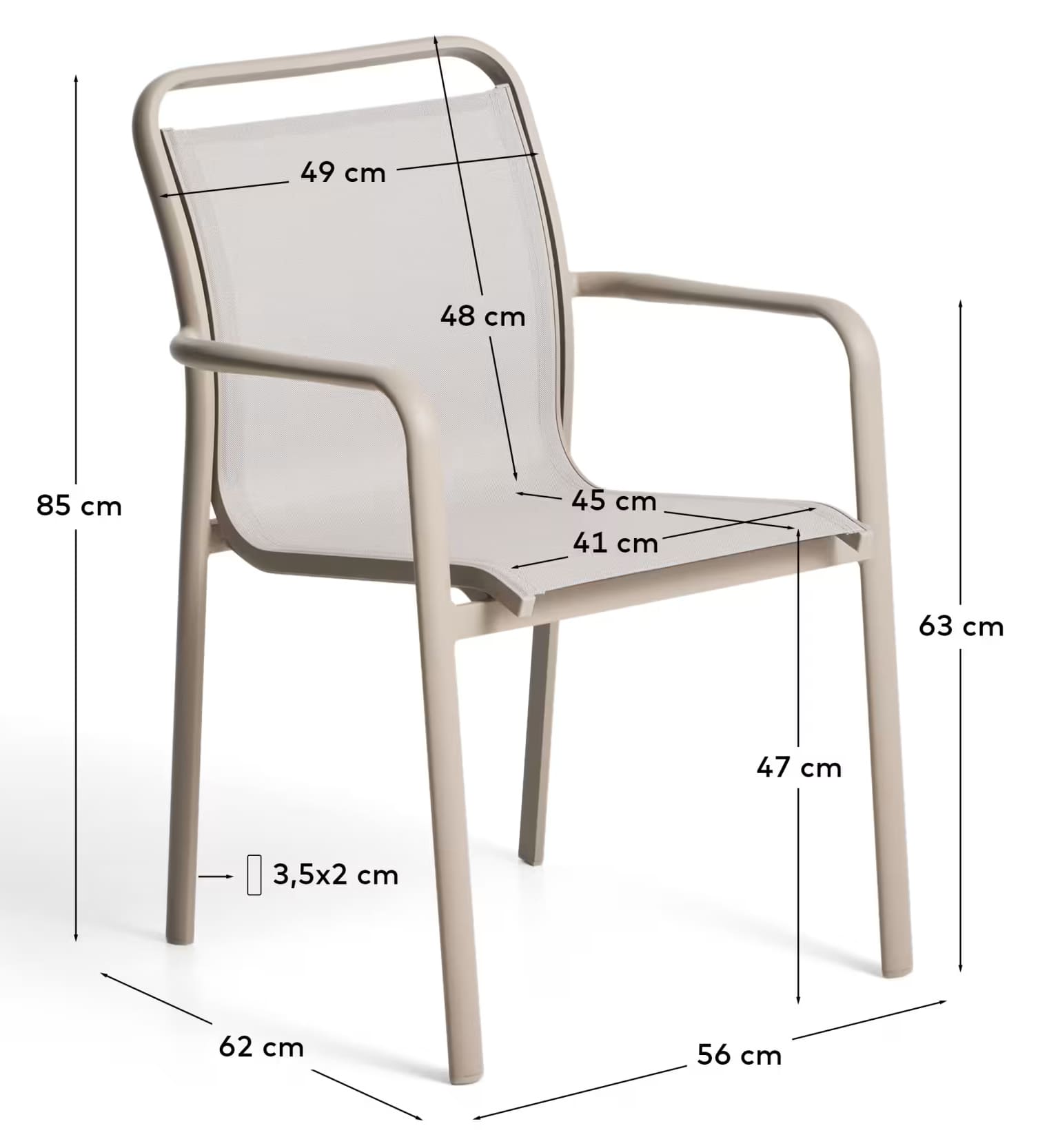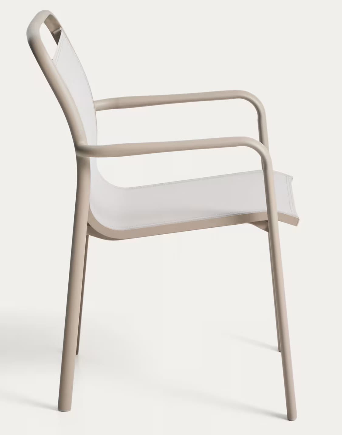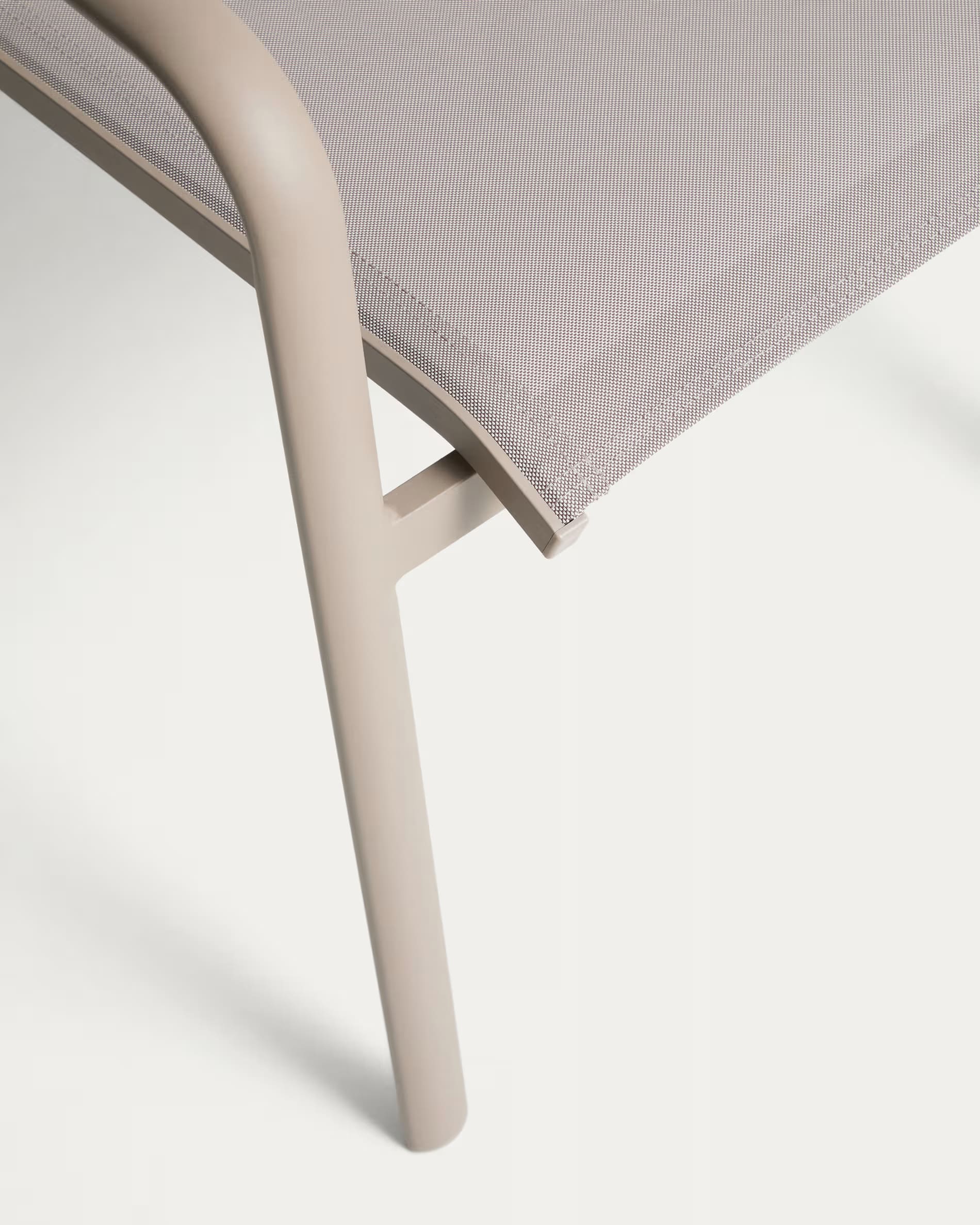 Сучасний вуличний стілець Luri від Kave Home – це практичне та універсальне рішення для тераси, балкону, саду, кухні чи ресторану. Легкий алюмінієвий каркас у поєднанні з сидінням та спинкою з texteline забезпечує комфорт, міцність та сучасний зовнішній вигляд.