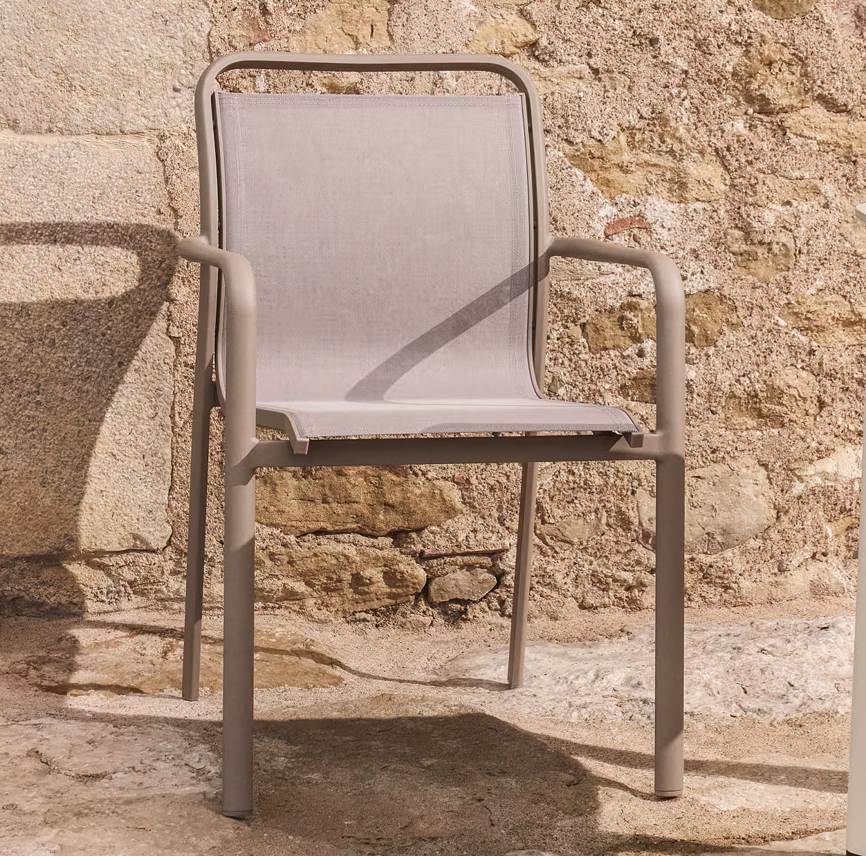 Завдяки дихаючому матеріалу та стійкості до зовнішніх умов, стілець ідеально підходить для щоденного використання як на вулиці, так і в приміщенні. Штабельована конструкція робить його зручним для зберігання та використання у комерційних просторах.