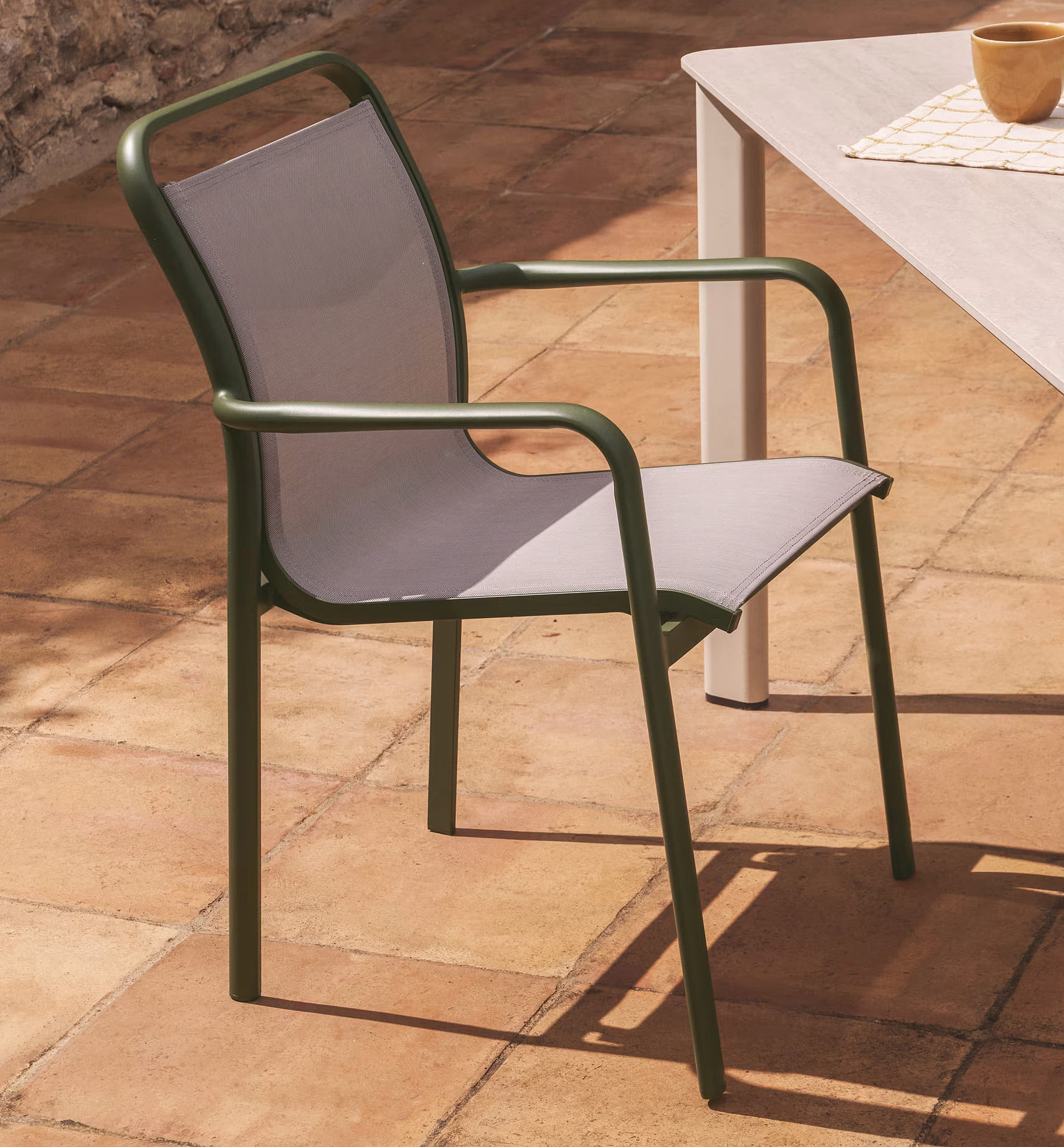 Завдяки дихаючому матеріалу та стійкості до зовнішніх умов, стілець ідеально підходить для щоденного використання як на вулиці, так і в приміщенні. Штабельована конструкція робить його зручним для зберігання та використання у комерційних просторах.