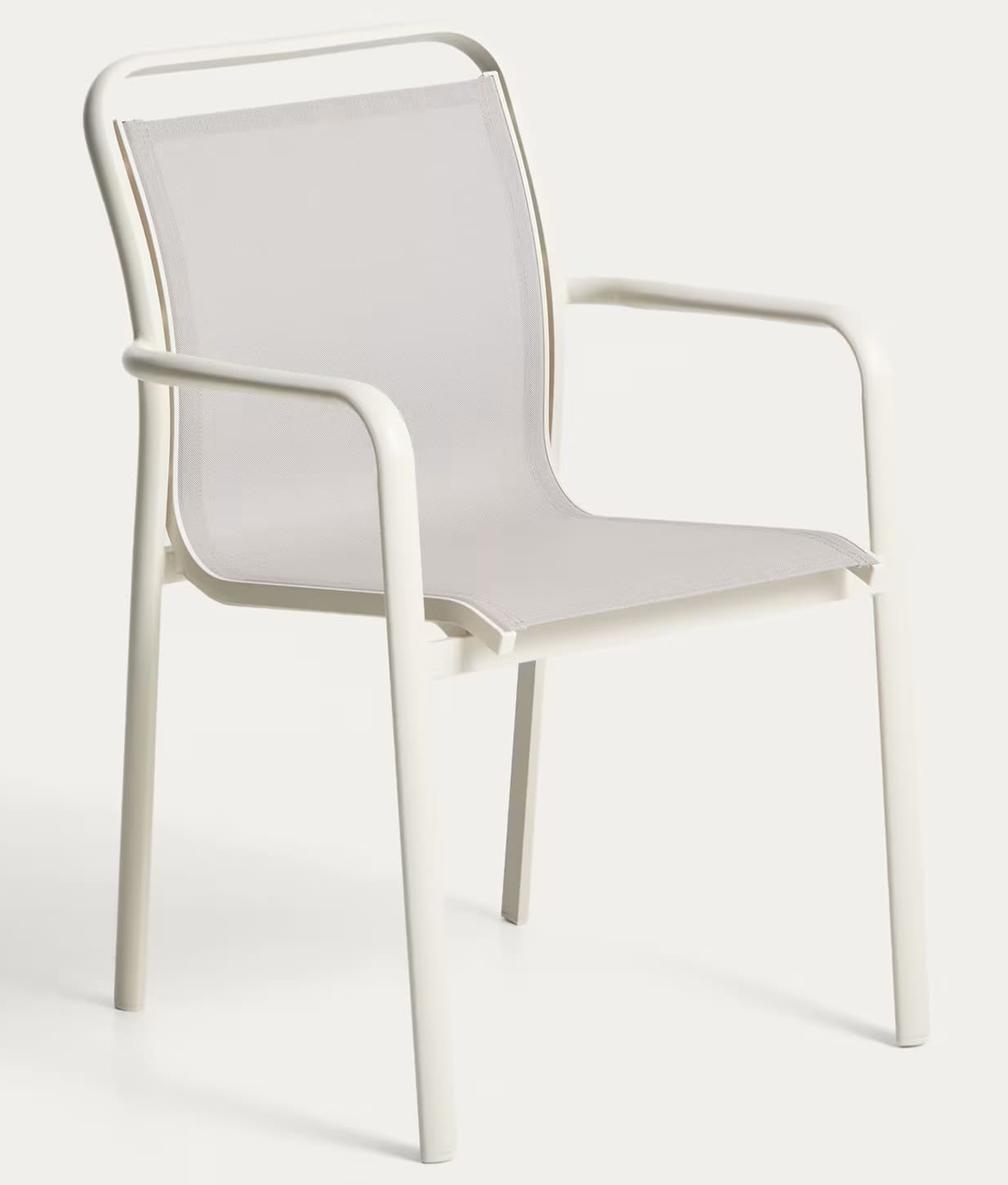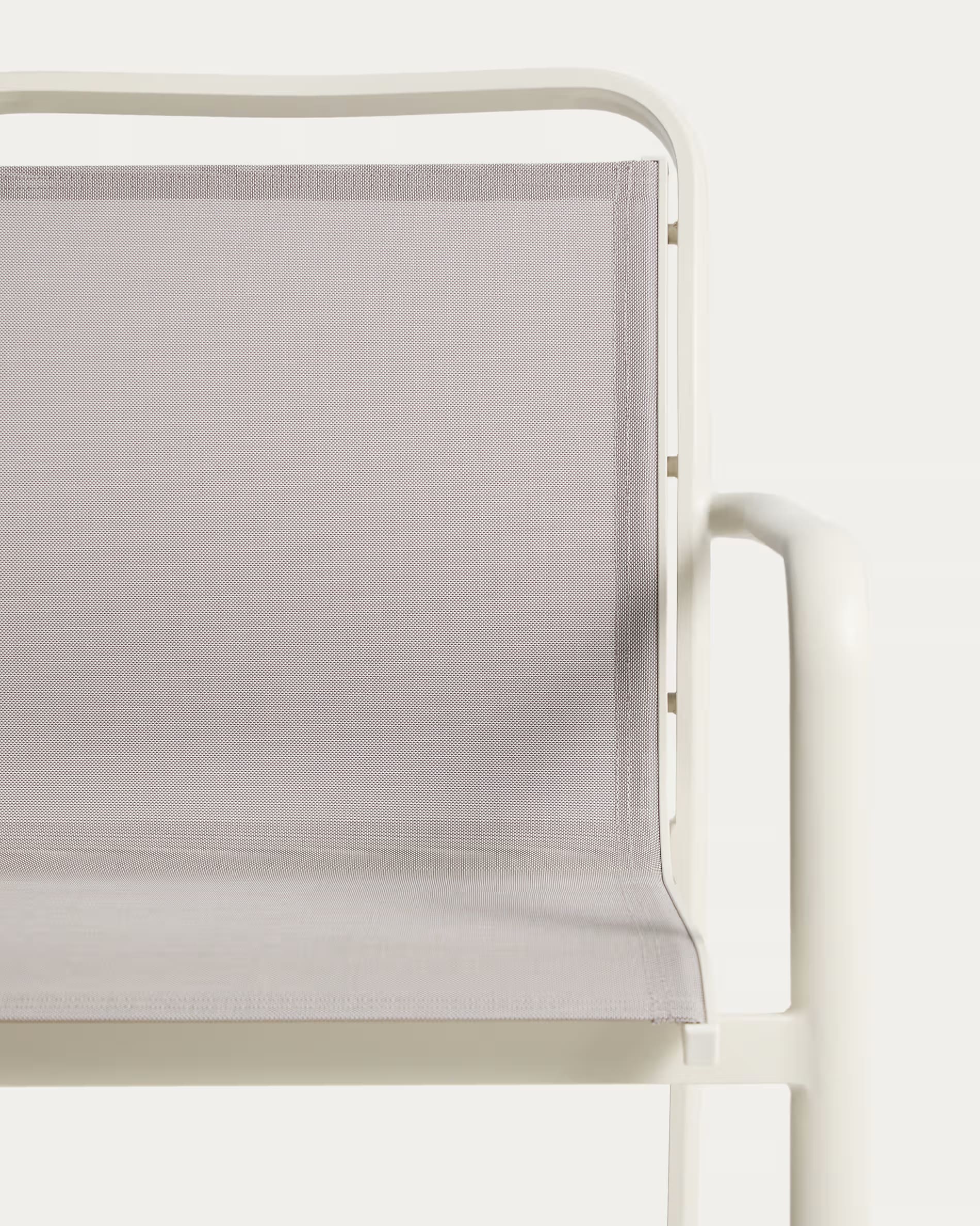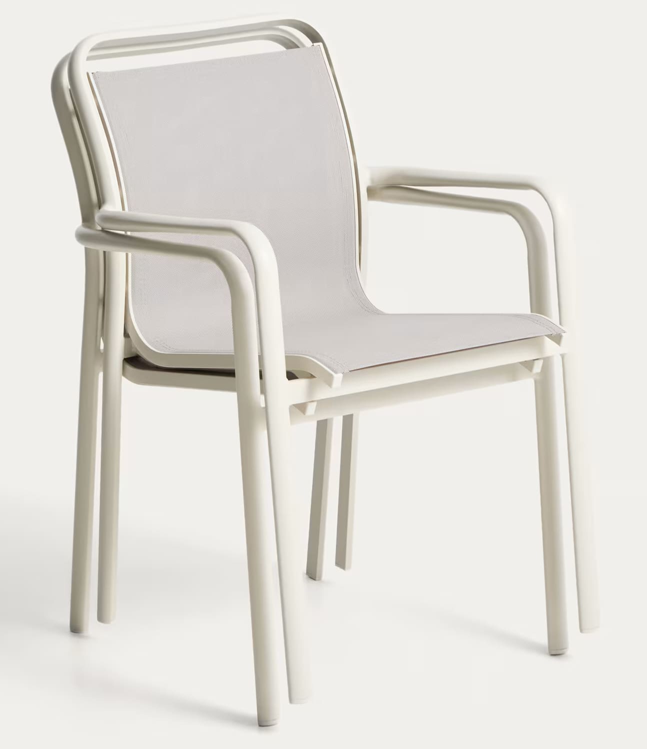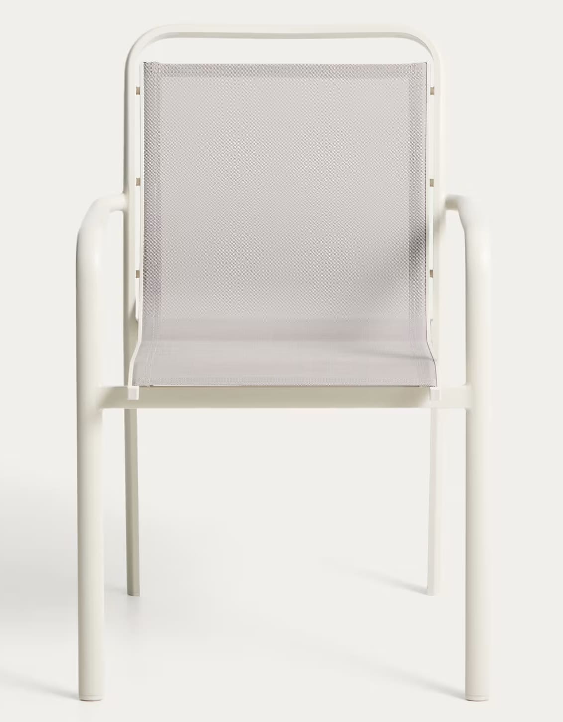 Сучасний вуличний стілець Luri від Kave Home – це практичне та універсальне рішення для тераси, балкону, саду, кухні чи ресторану. Легкий алюмінієвий каркас у поєднанні з сидінням та спинкою з texteline забезпечує комфорт, міцність та сучасний зовнішній вигляд.