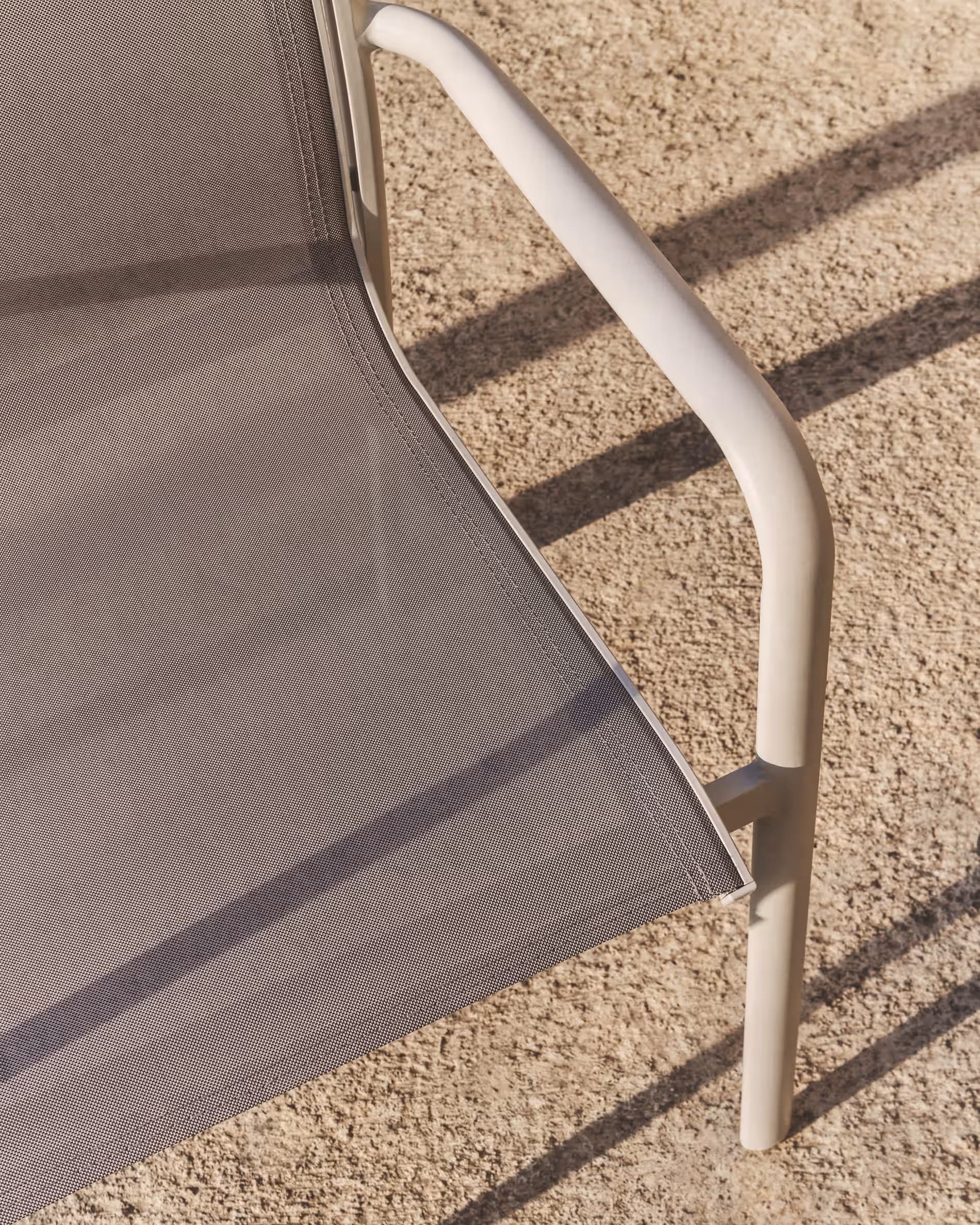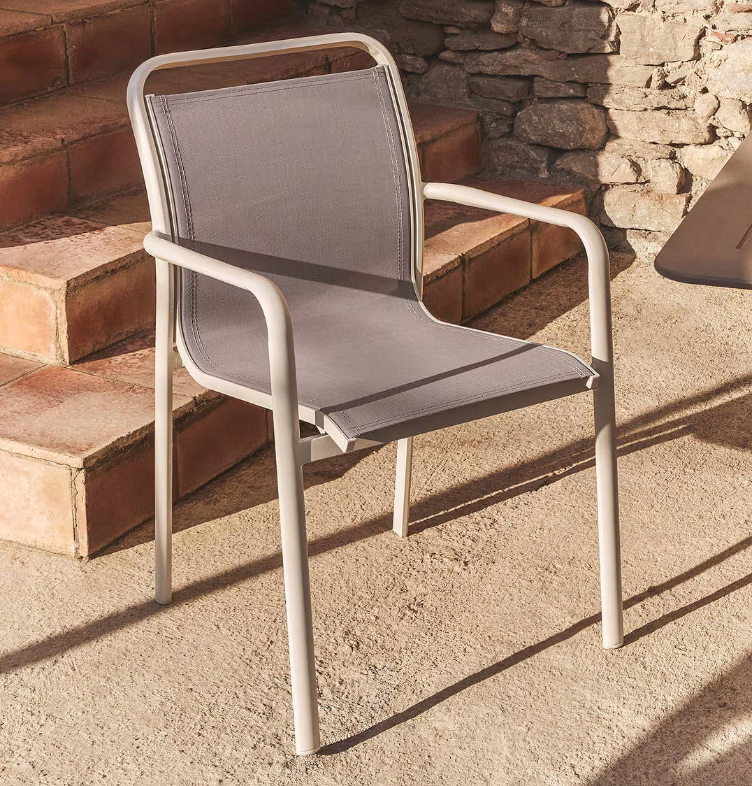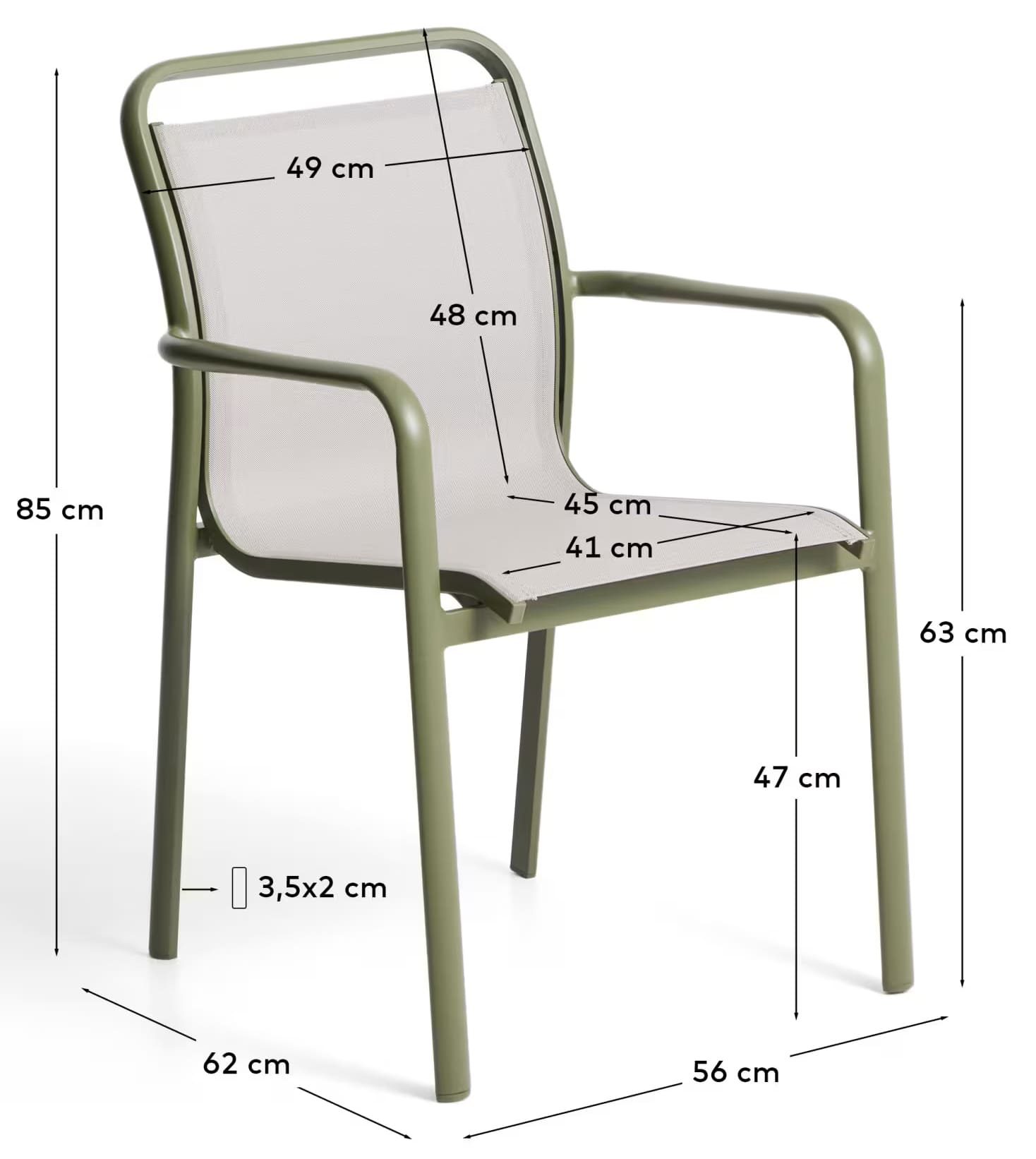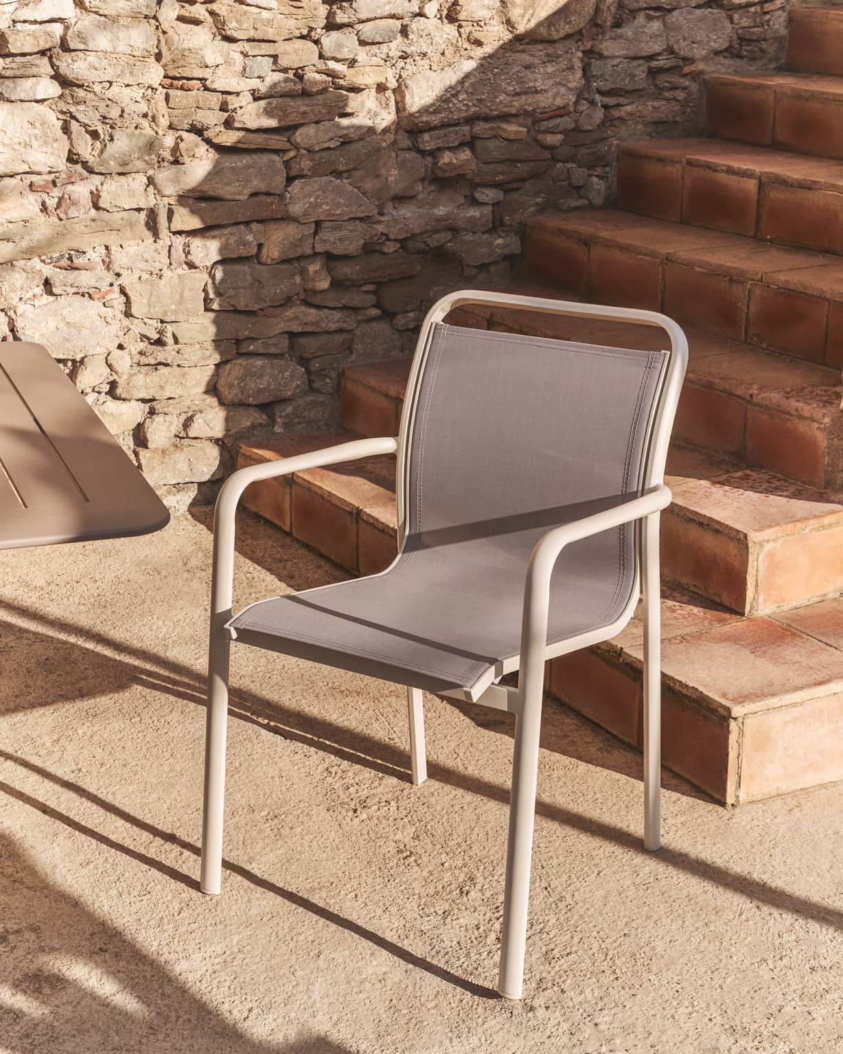 Сучасний вуличний стілець Luri від Kave Home – це практичне та універсальне рішення для тераси, балкону, саду, кухні чи ресторану. Легкий алюмінієвий каркас у поєднанні з сидінням та спинкою з texteline забезпечує комфорт, міцність та сучасний зовнішній вигляд.