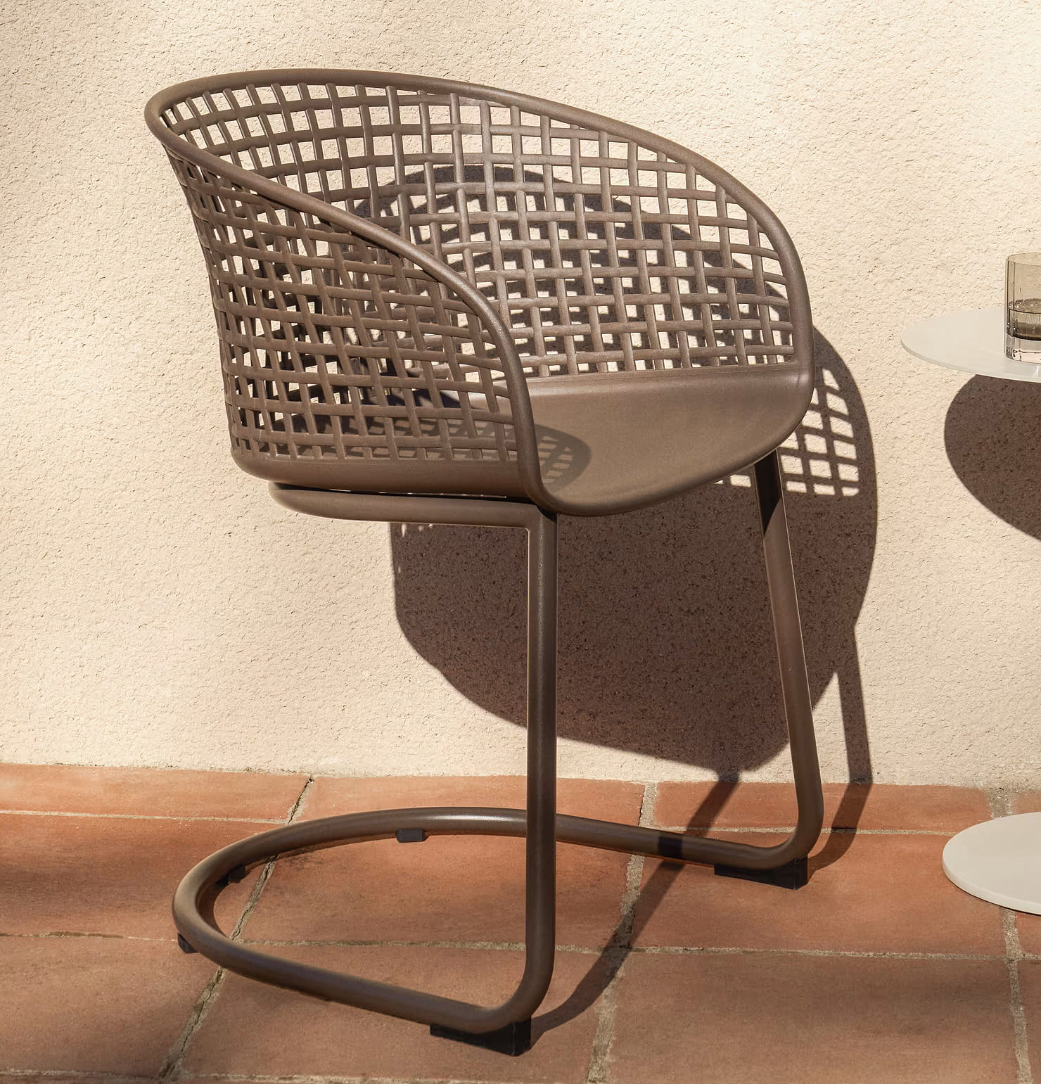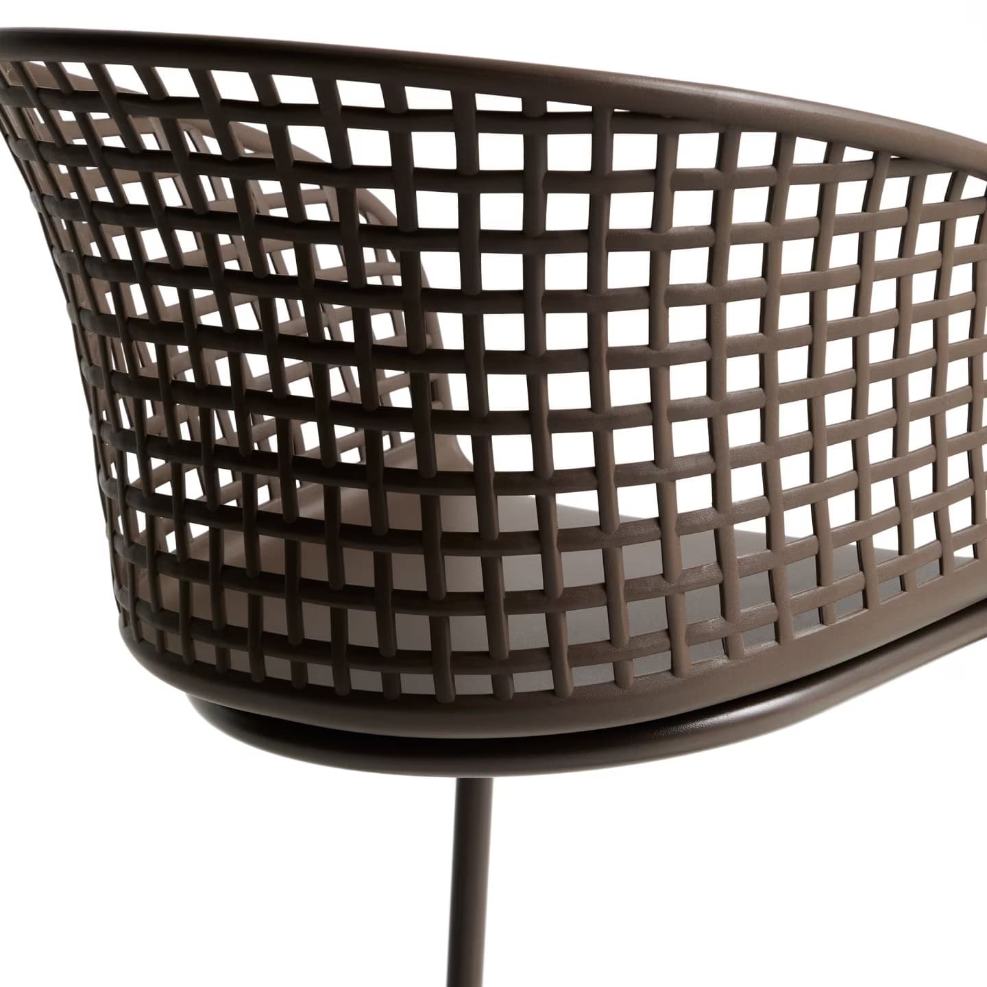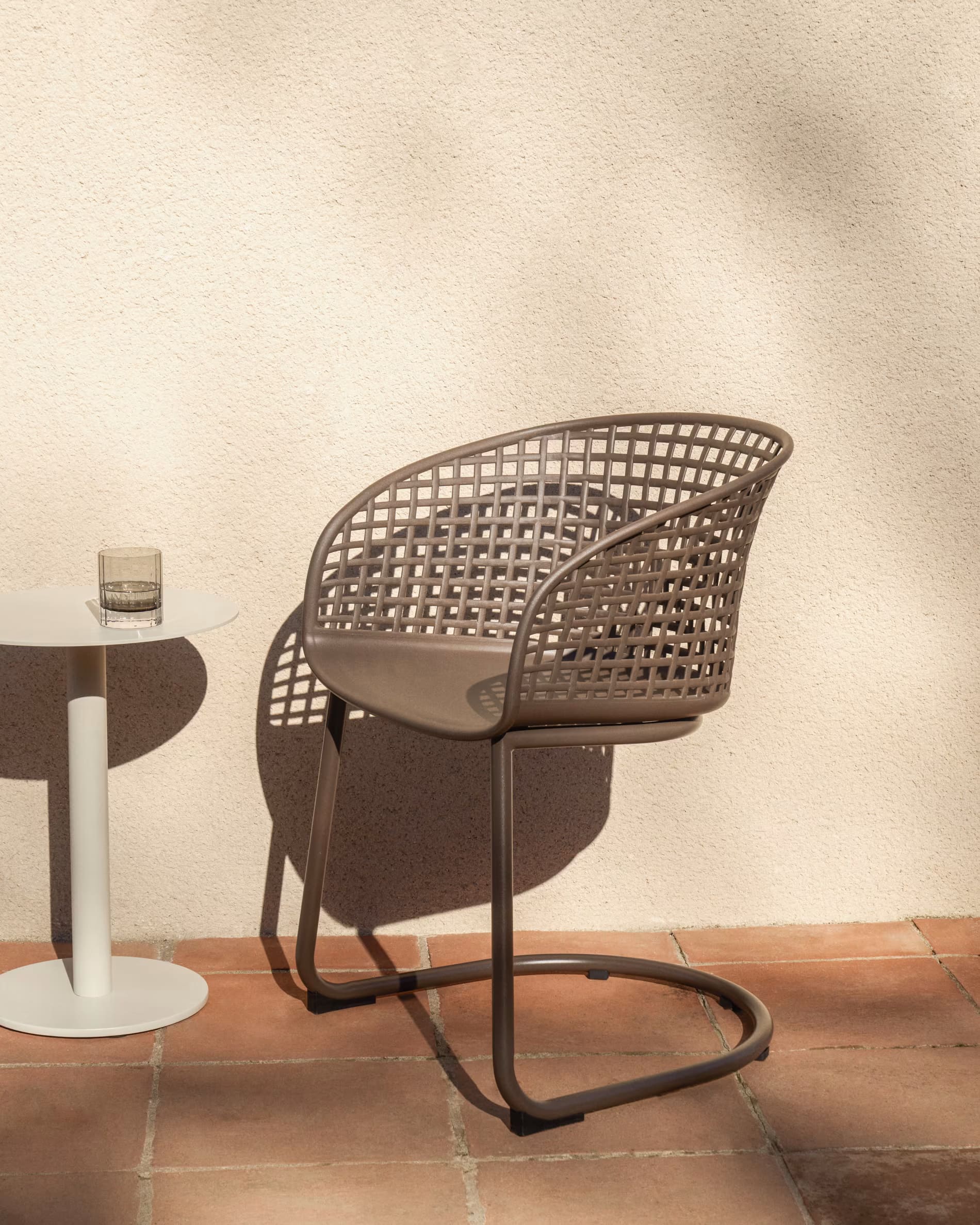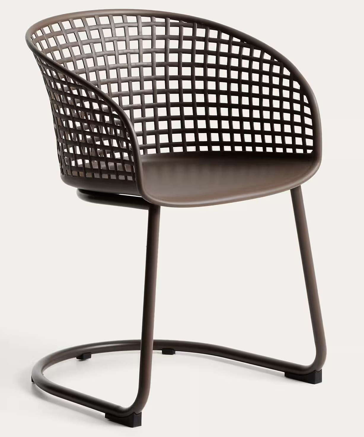 Вуличний стілець Kave Home Tenaro, пластик/коричневий метал – сучасне та практичне рішення, яке гармонійно доповнює простір тераси, саду чи балкону та також підходить для використання в інтер'єрі будинку.