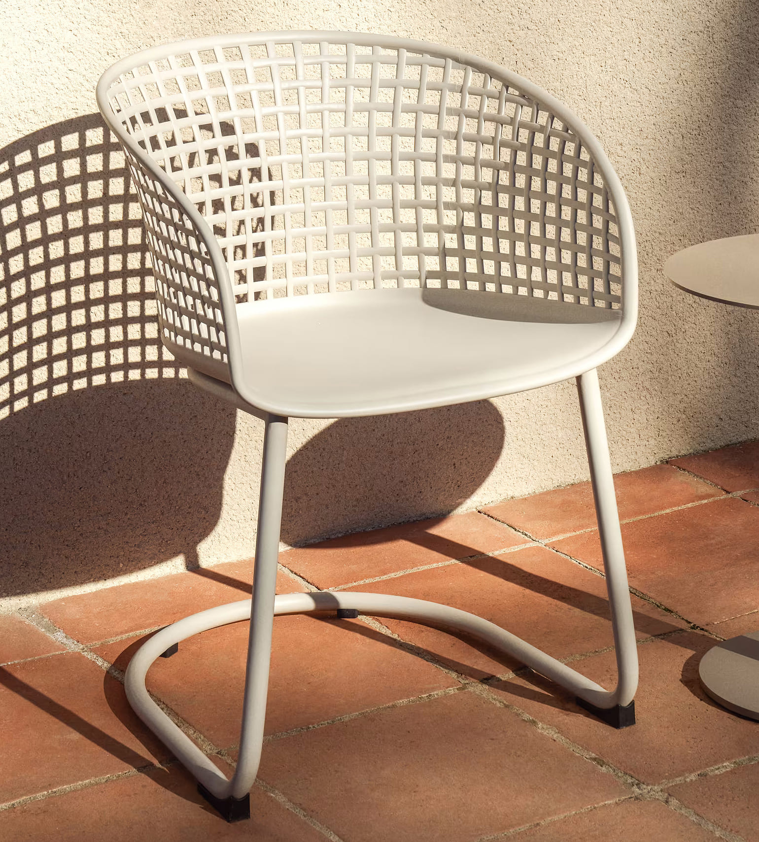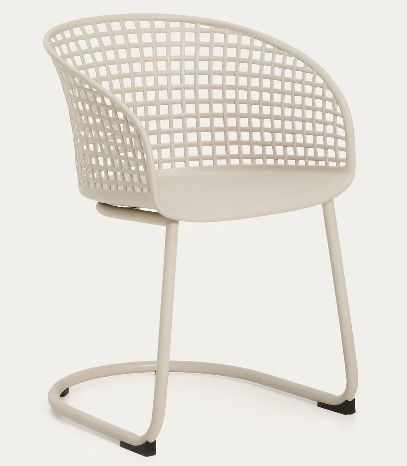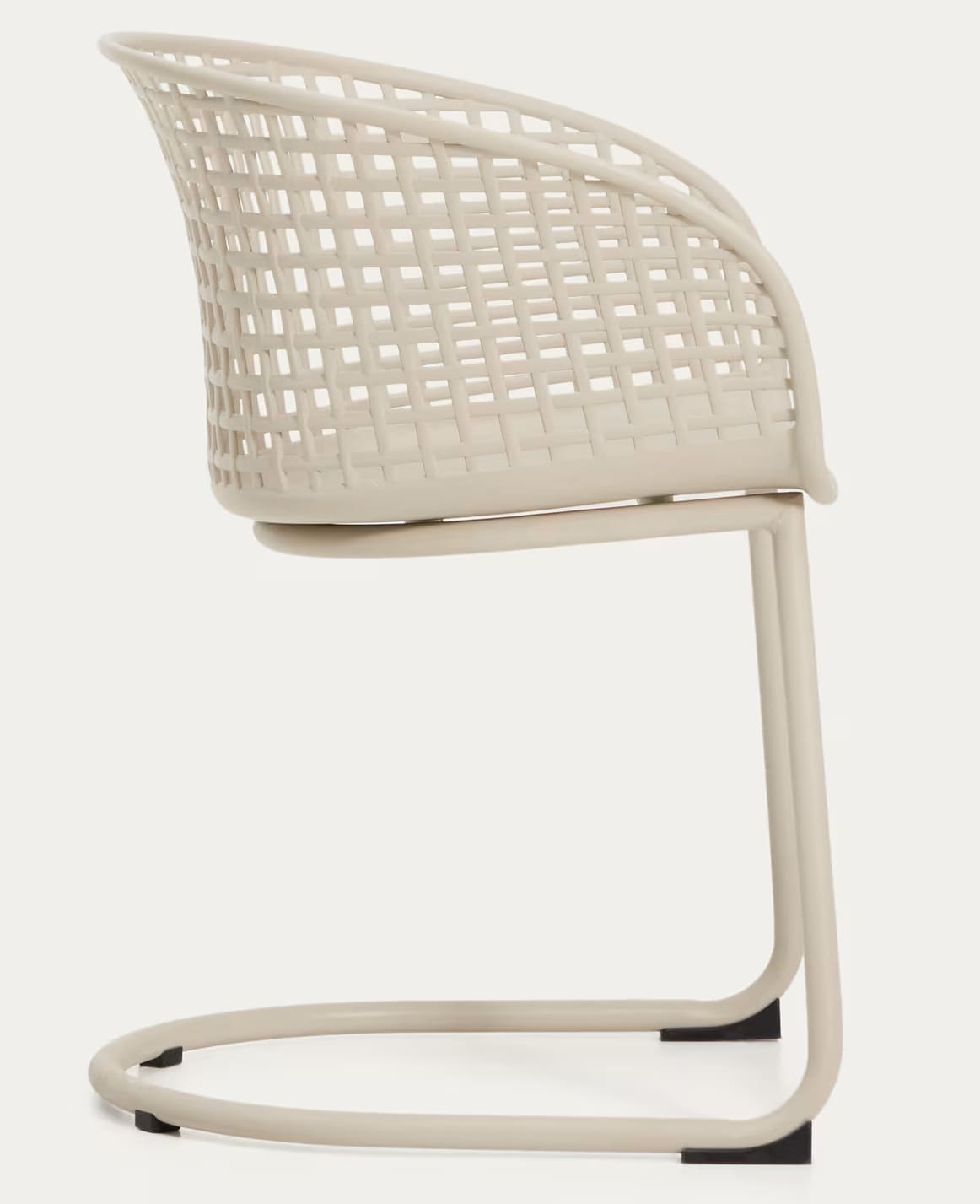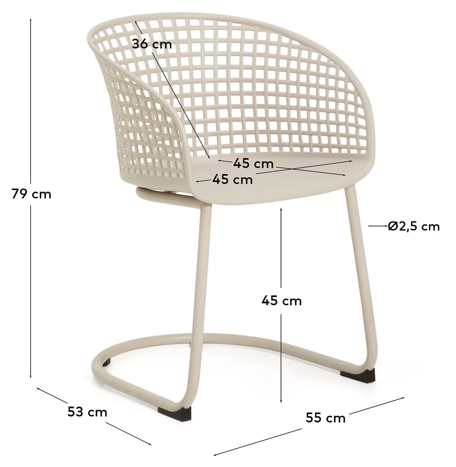 Вуличний стілець Kave Home Tenaro, пластик/бежевий метал – сучасне та практичне рішення, яке гармонійно доповнює простір тераси, саду чи балкону та також підходить для використання в інтер'єрі будинку.