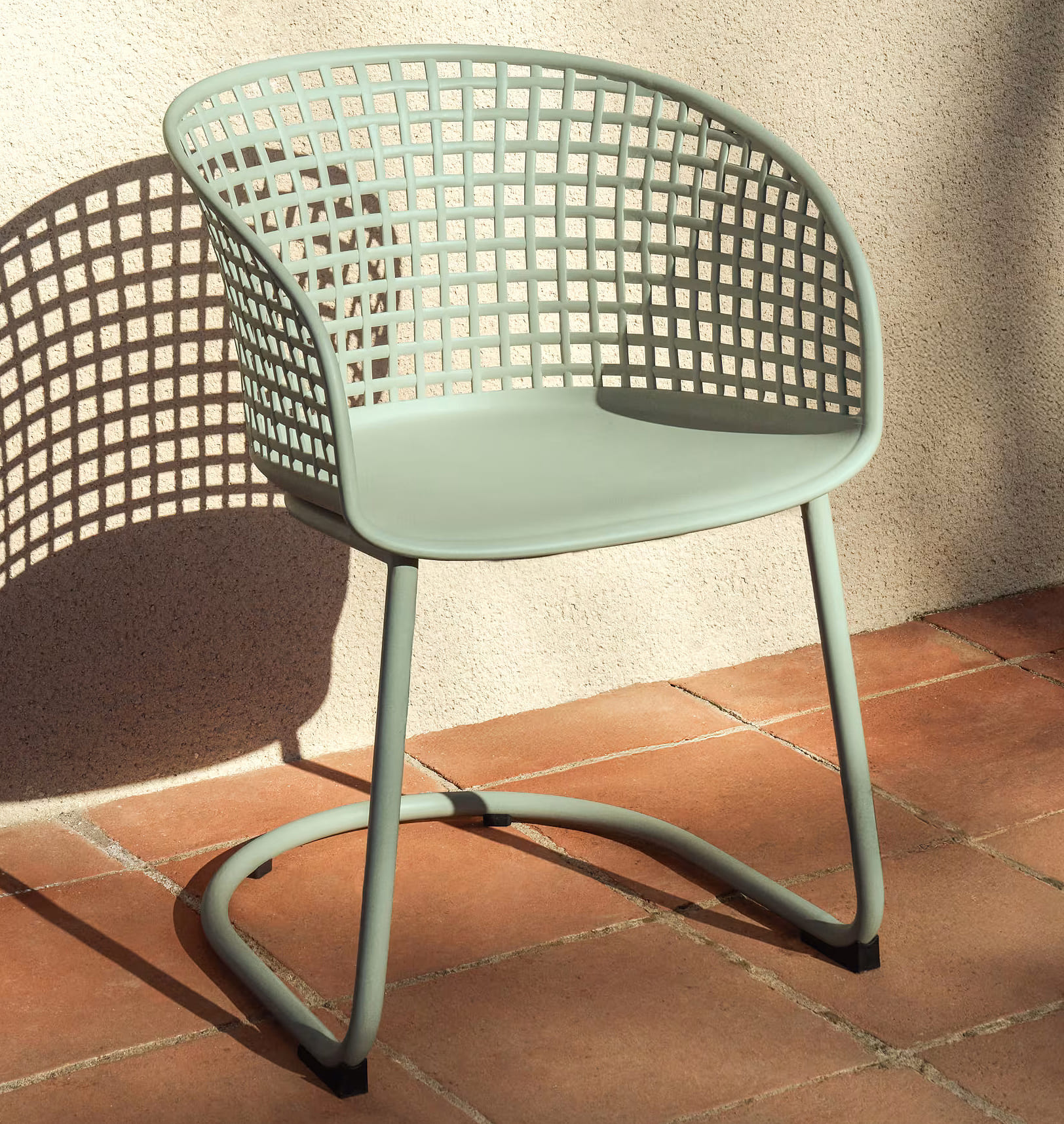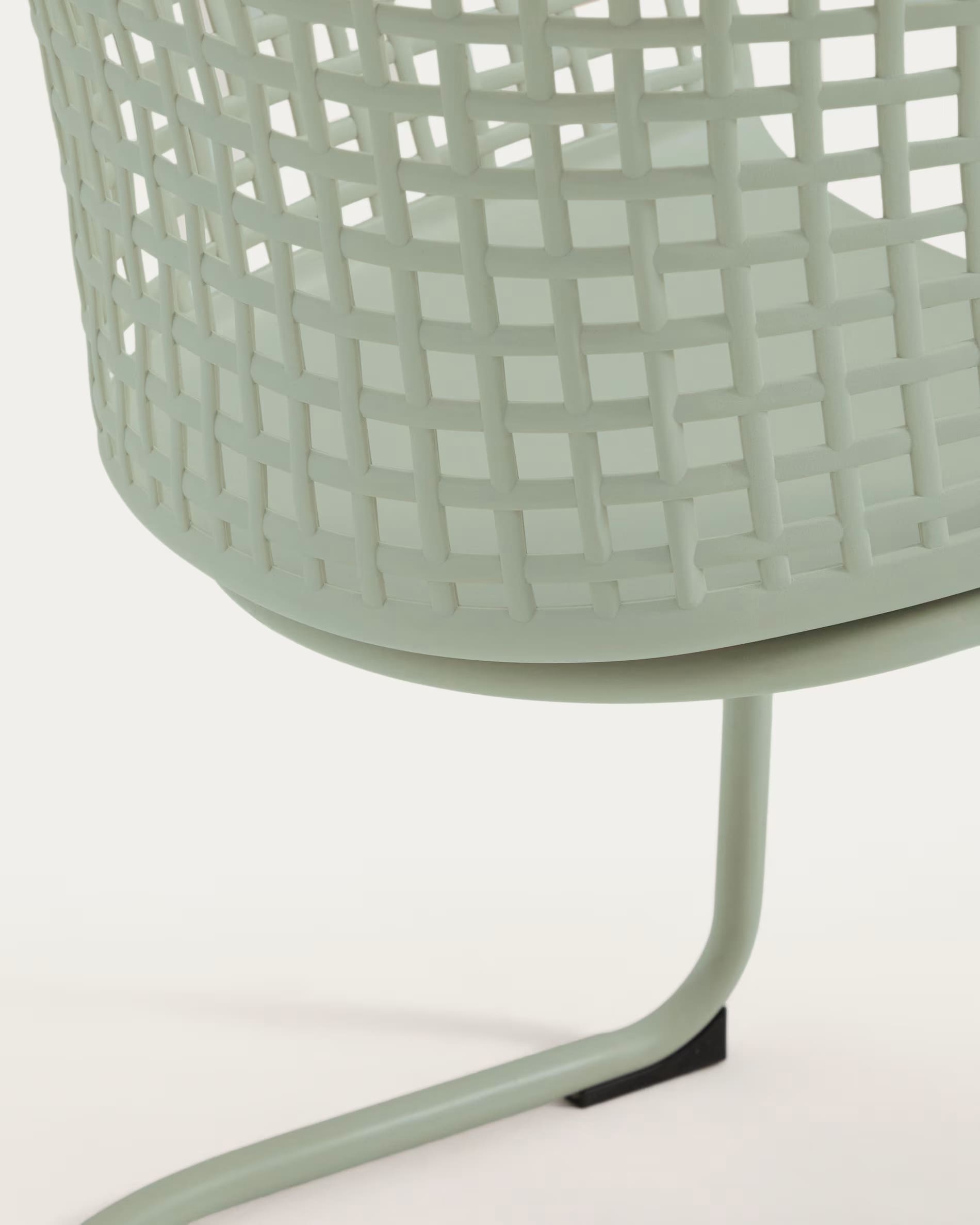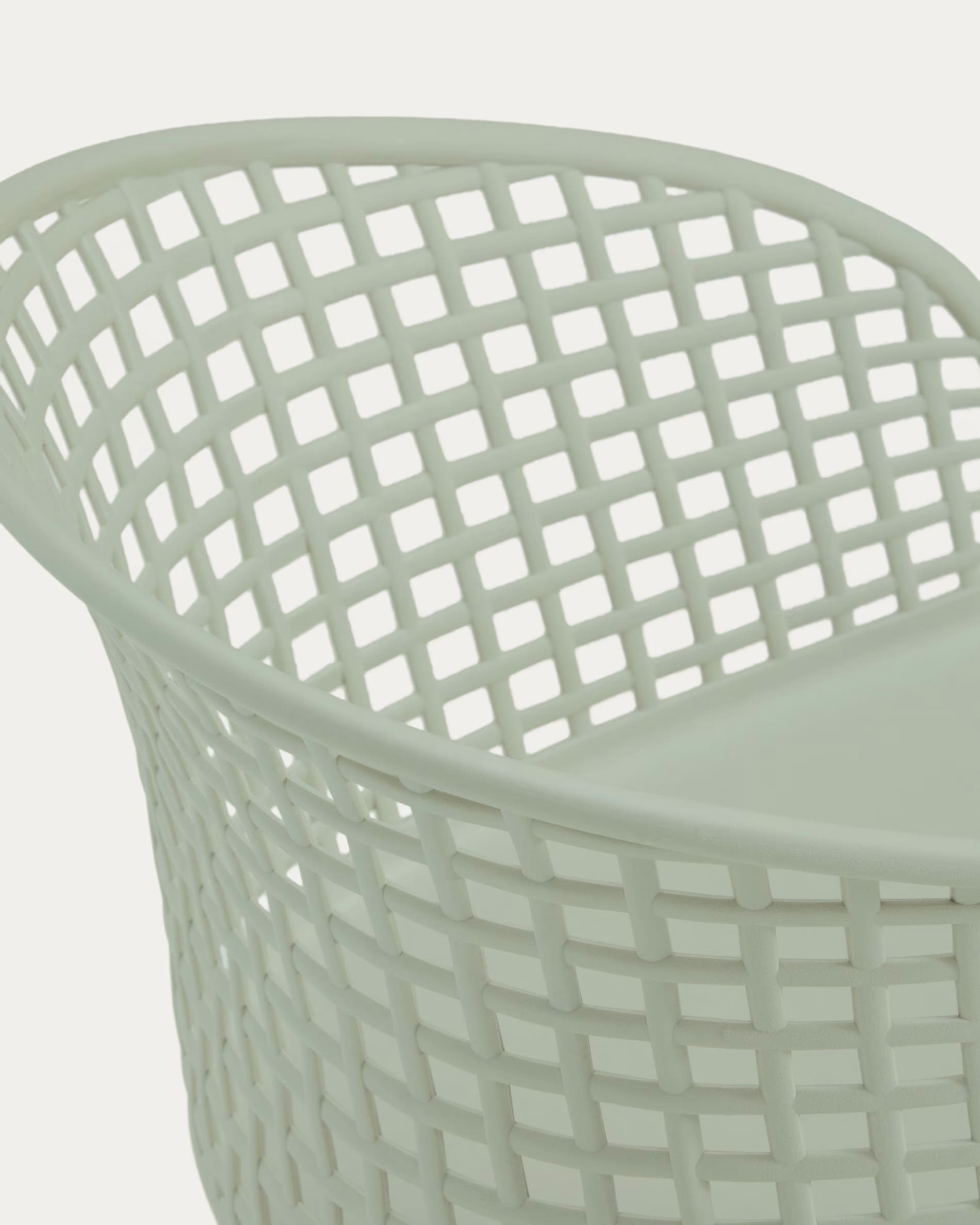 Вуличний стілець Kave Home Tenaro, пластик/зелений метал – сучасне та практичне рішення, яке гармонійно доповнює простір тераси, саду чи балкону та також підходить для використання в інтер'єрі будинку.