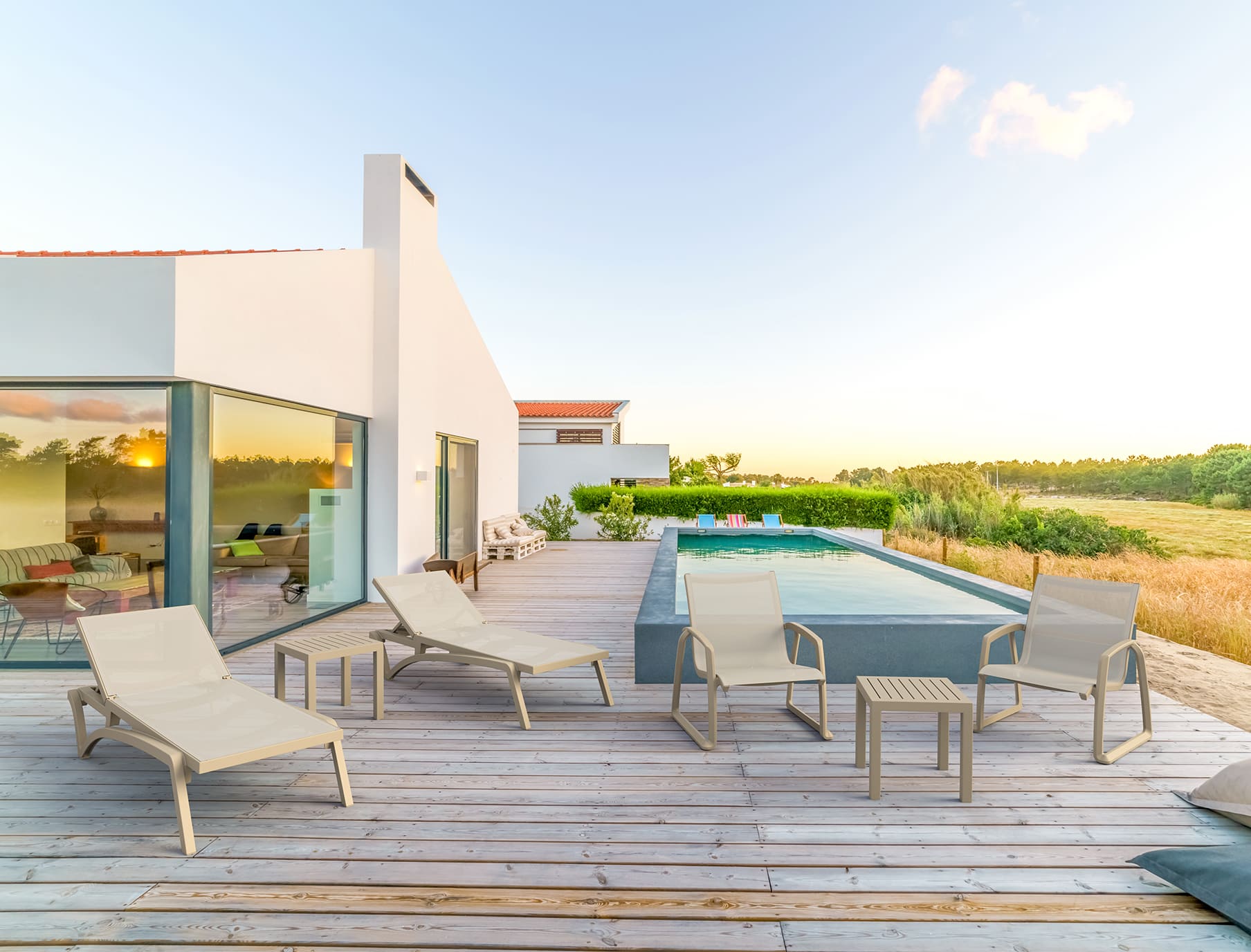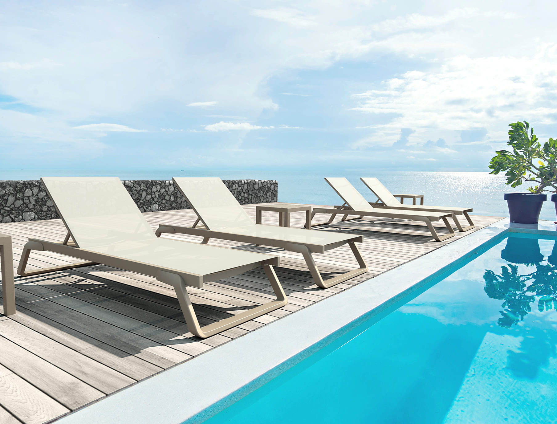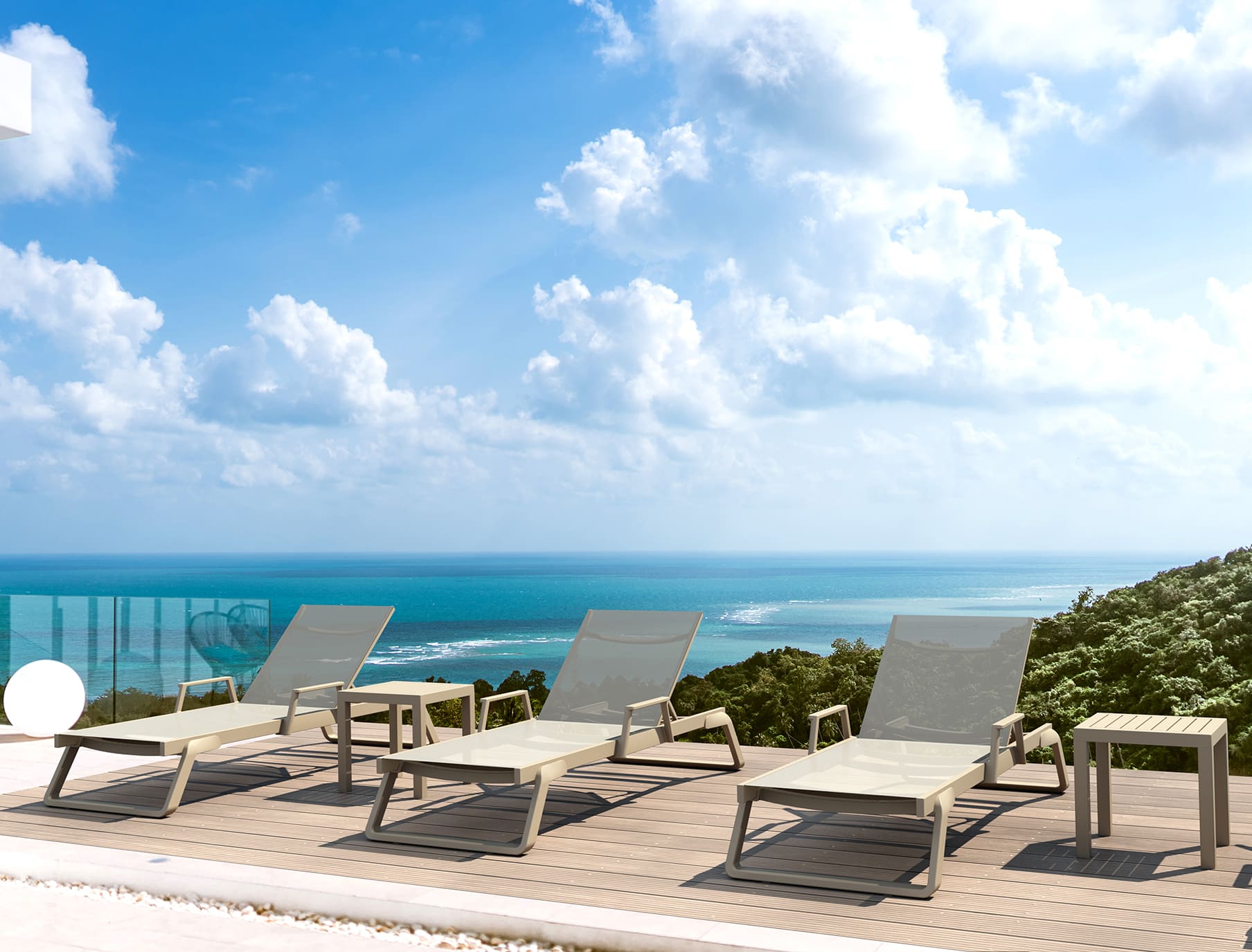 - Легкий та мобільний – легко переміщати по терасі або біля басейну.