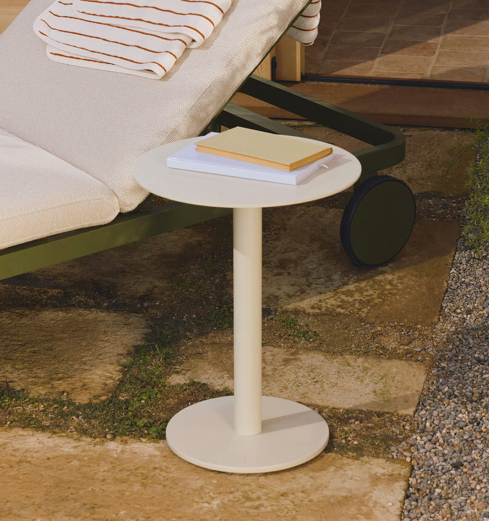 Вуличний журнальний столик Kave Home Asinara Екрю Ø 40 см — сучасне та практичне рішення, що гармонійно доповнює простір тераси, саду чи балкона та чудово вписується в інтер’єр будинку.