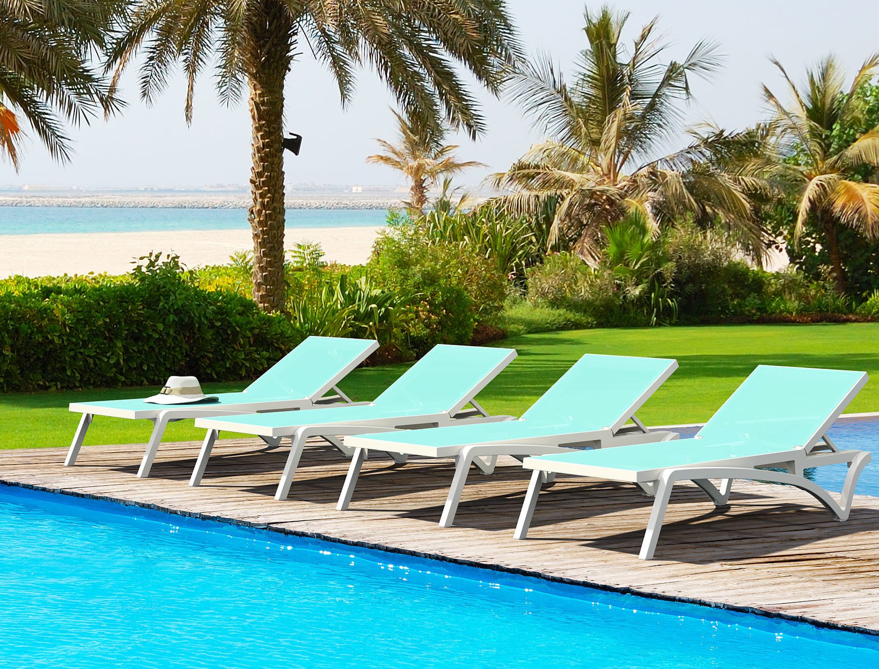 - Уличный шезлонг премиум-класса — идеально для бассейна, террасы и пляжных зон.
