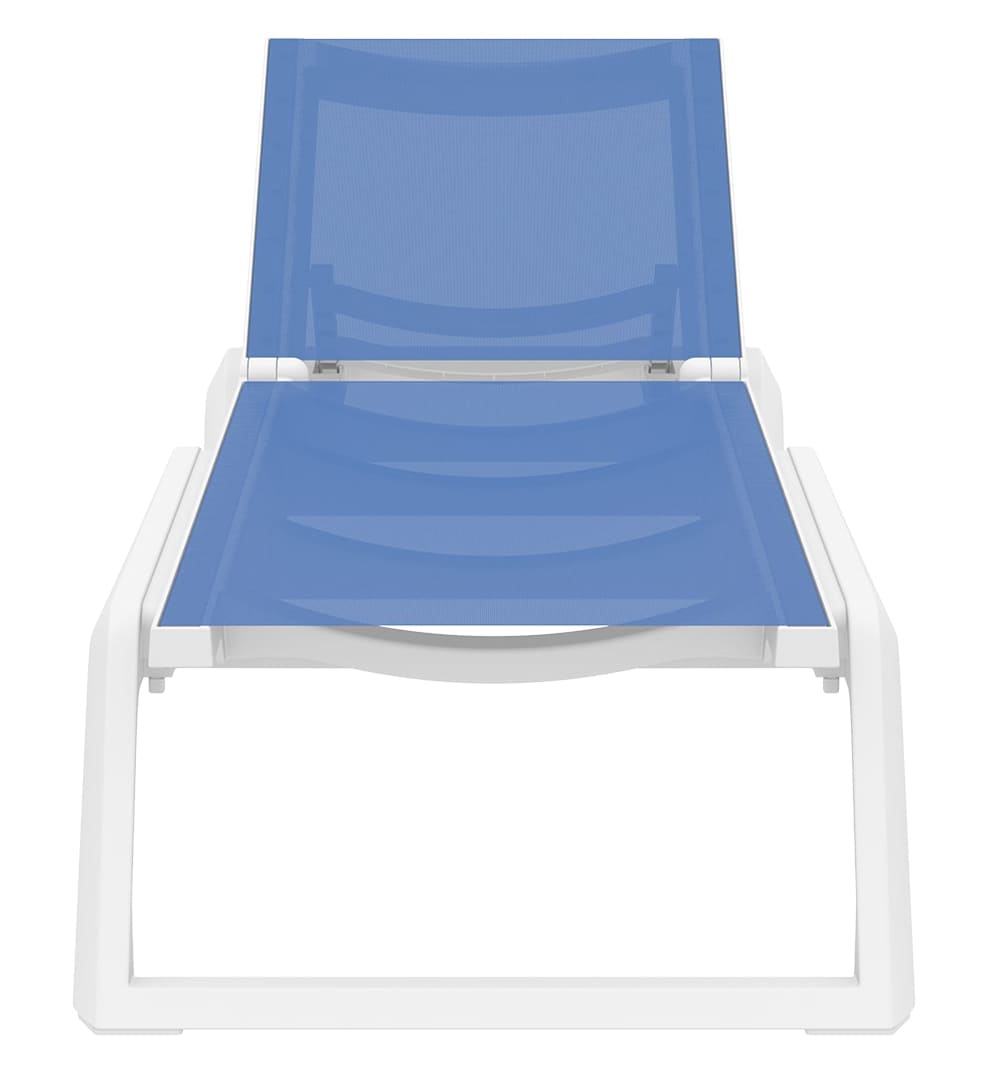 Лежак оснащен дышащим синтетическим полотном, которое не нагревается на солнце и быстро высыхает. Регулируемая спинка с 5 положениями позволяет выбрать оптимальное положение для отдыха, а встроенные маленькие колесики облегчают перемещение. Легкая и штабелируемая конструкция делает модель удобной для хранения и использования в HoReCa.