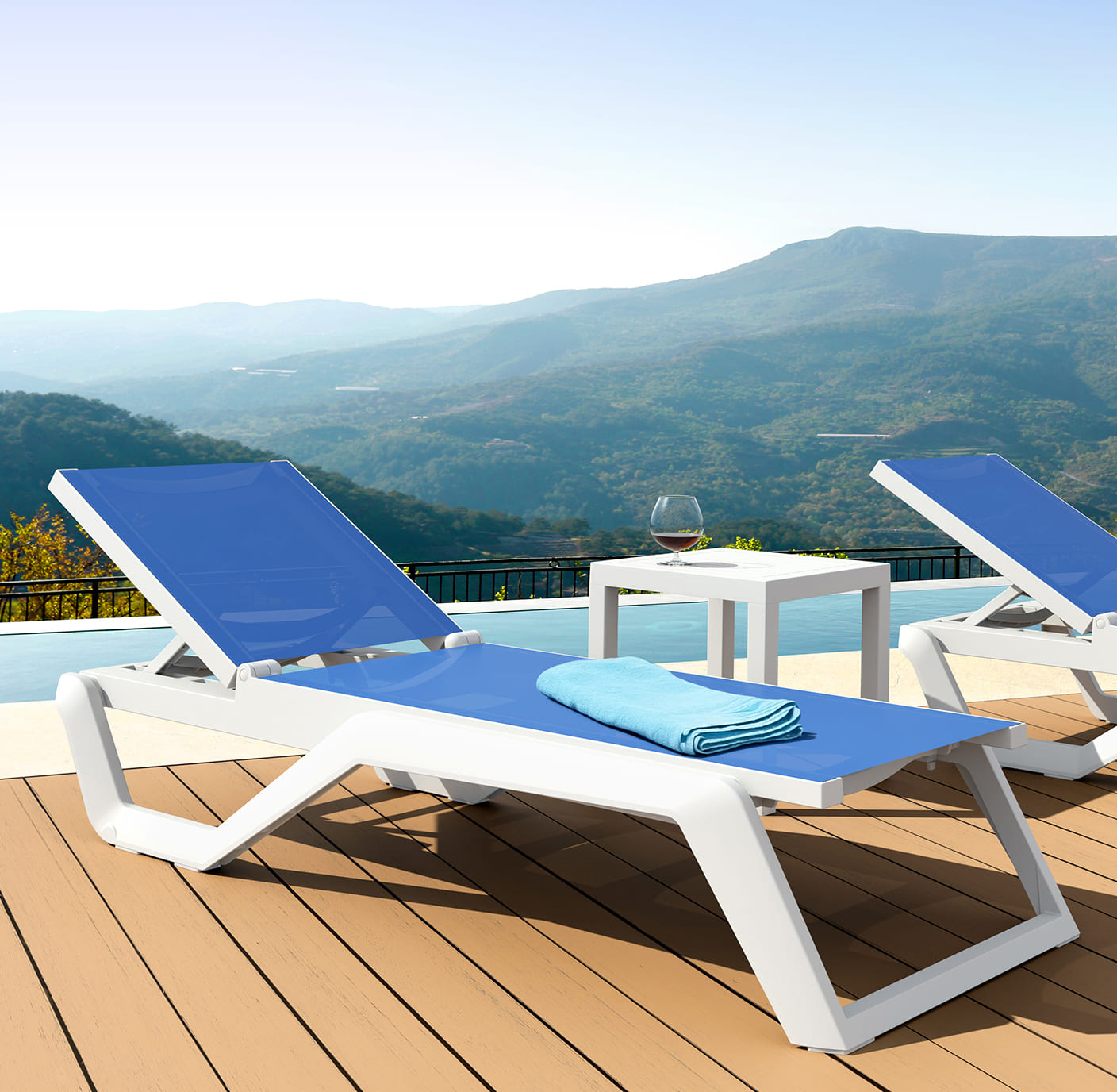 - Уличный шезлонг премиум-класса — идеально для бассейна, террасы и пляжных зон.