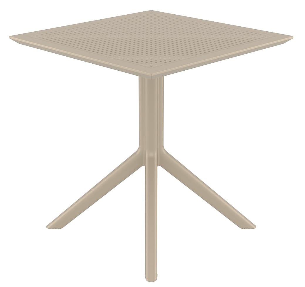 Стол Siesta Sky Table 70 Бежевый (Taupe) — это практичный и стильный уличный стол для террасы, кафе и сада. Модель изготовлена из прочного полипропилена, армированного стекловолокном, что обеспечивает долговечность и устойчивость к нагрузкам.