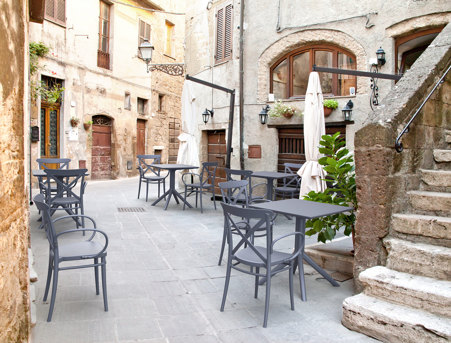 Стол не боится влаги и УФ-лучей, подходит для использования на улице и легко сочетается с уличными стульями. Оптимальный размер 70×70 см делает его удобным решением для дома и HoReCa.