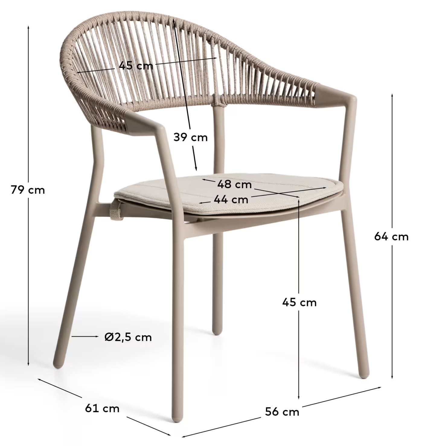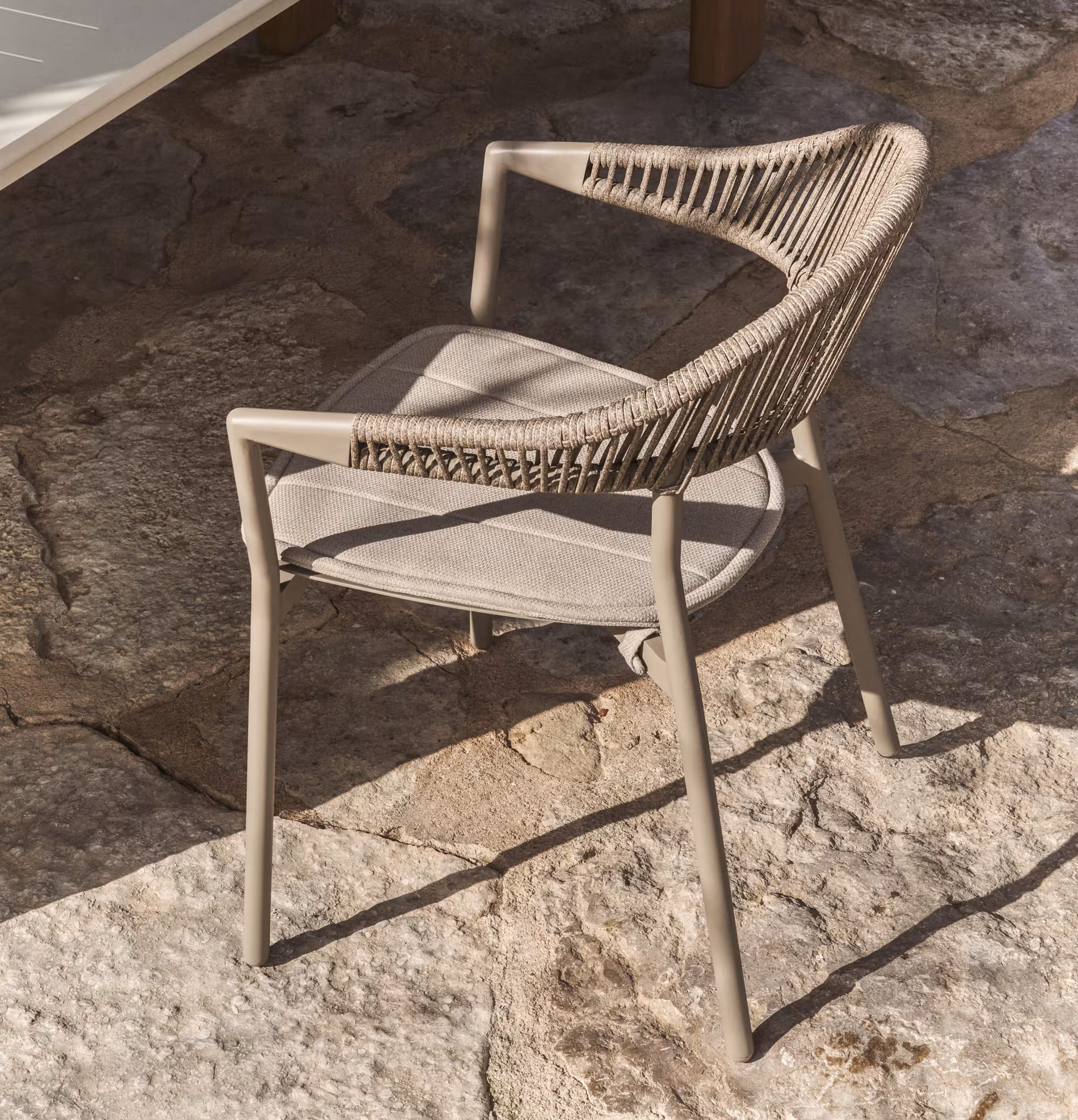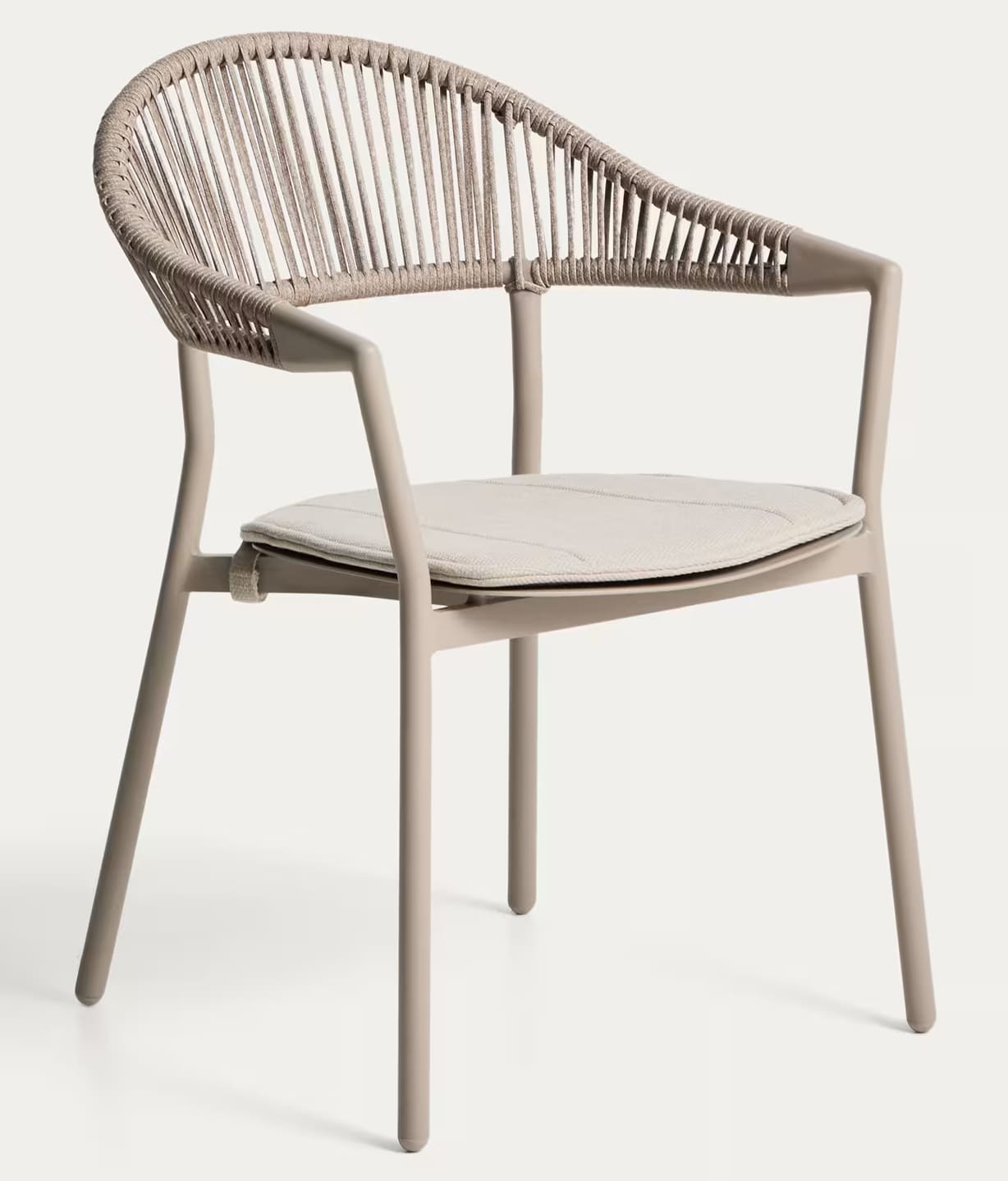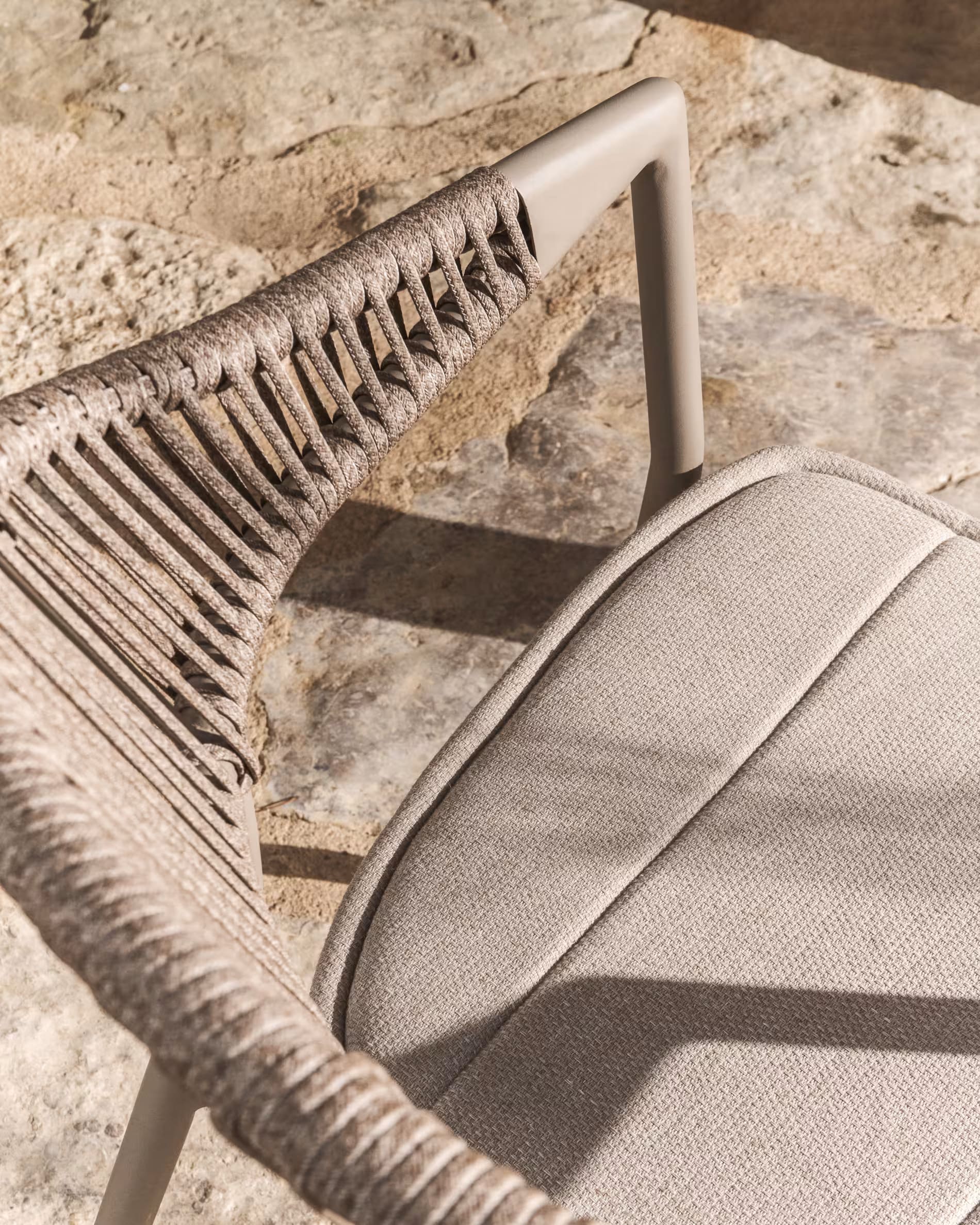 Современный уличный стул Alimia от Kave Home — это универсальное решение для террасы, сада, балкона, кухни или ресторана. Легкий алюминиевый каркас в сочетании с плетеным сиденьем из синтетического шнура обеспечивает прочность, комфорт и стильный внешний вид.