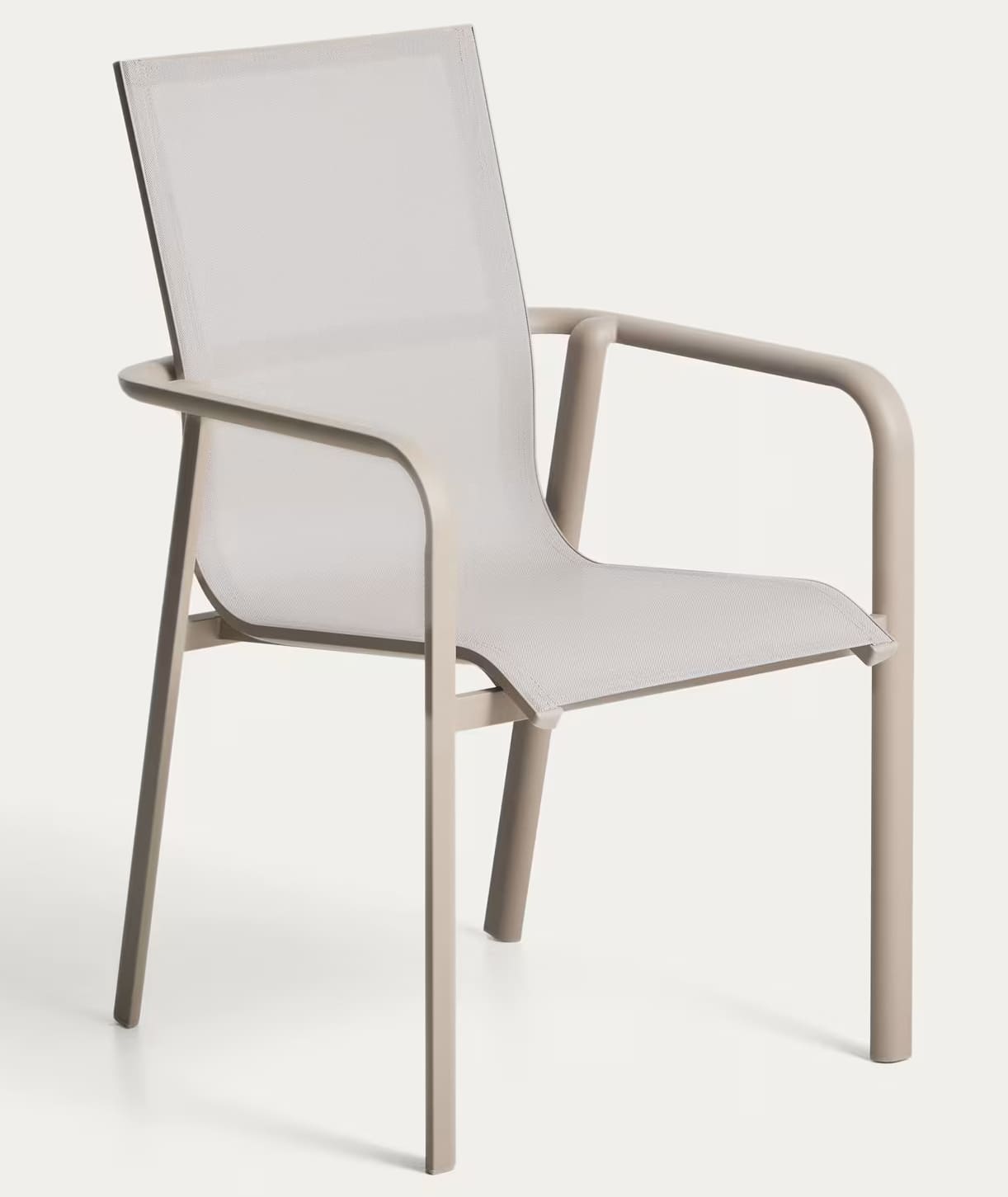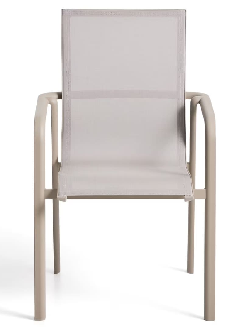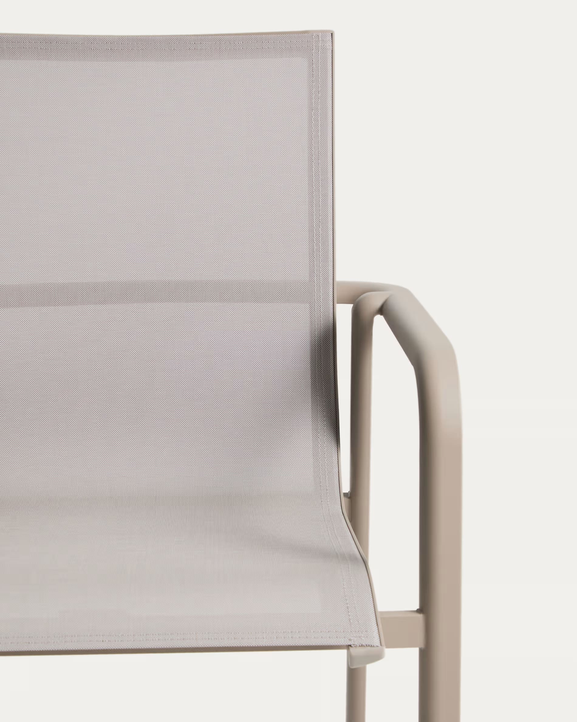 Современный уличный стул Canea от Kave Home — это практичное и универсальное решение для террасы, балкона, сада, кухни или ресторана. Легкий алюминиевый каркас в сочетании с сиденьем и спинкой из texteline обеспечивает комфорт, прочность и современный внешний вид.