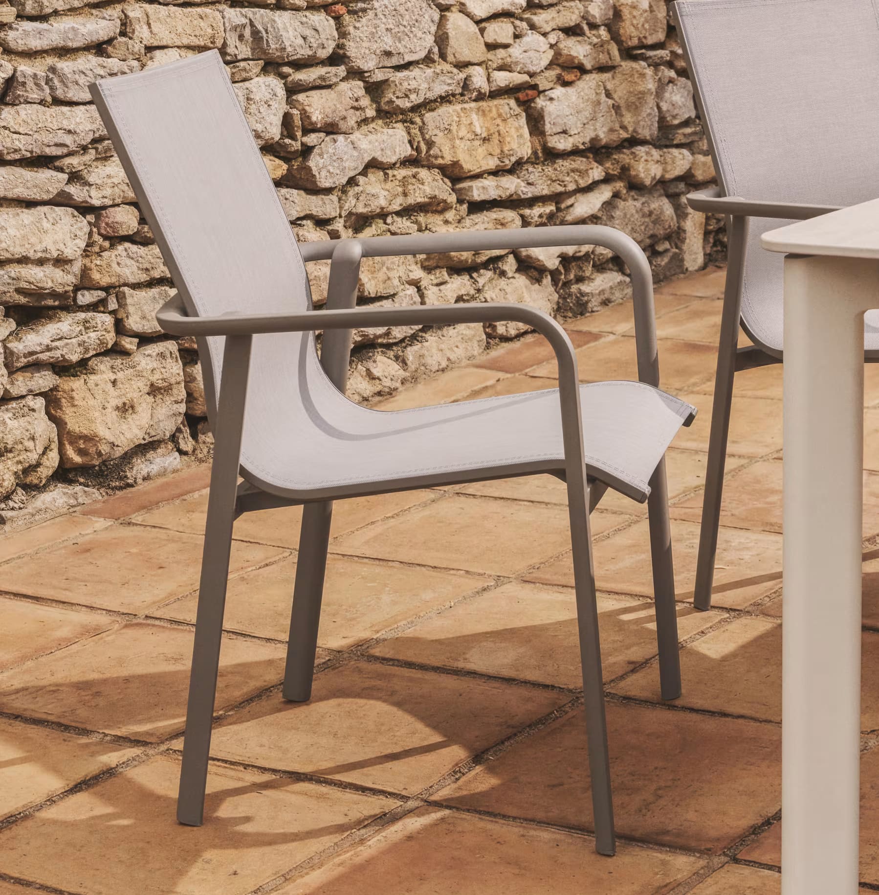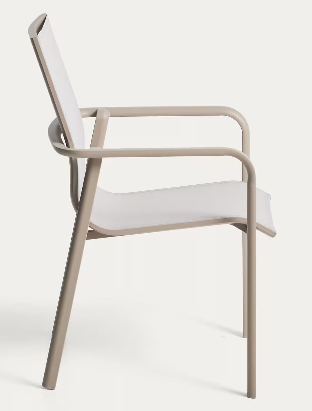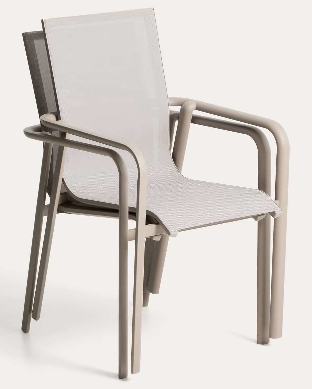 Современный уличный стул Canea от Kave Home — это практичное и универсальное решение для террасы, балкона, сада, кухни или ресторана. Легкий алюминиевый каркас в сочетании с сиденьем и спинкой из texteline обеспечивает комфорт, прочность и современный внешний вид.