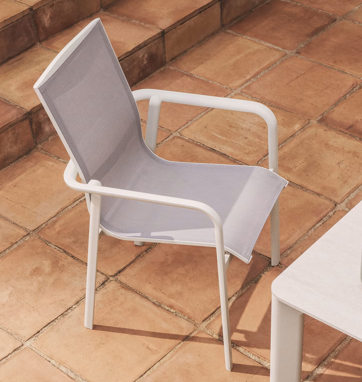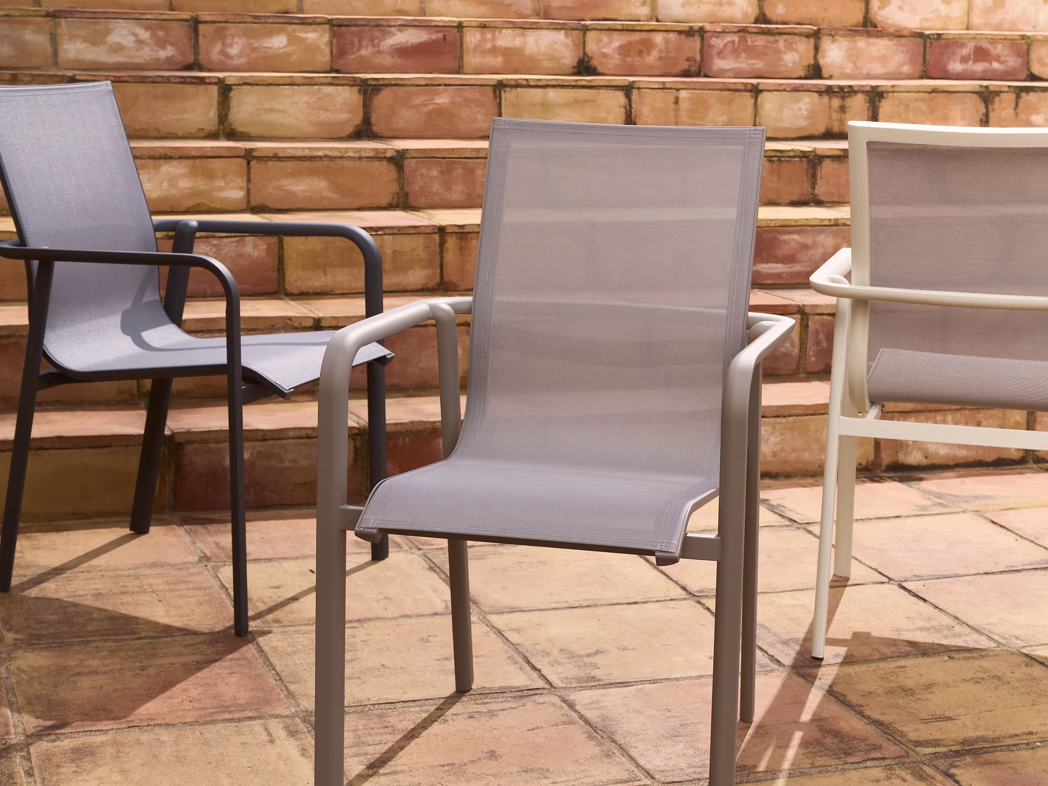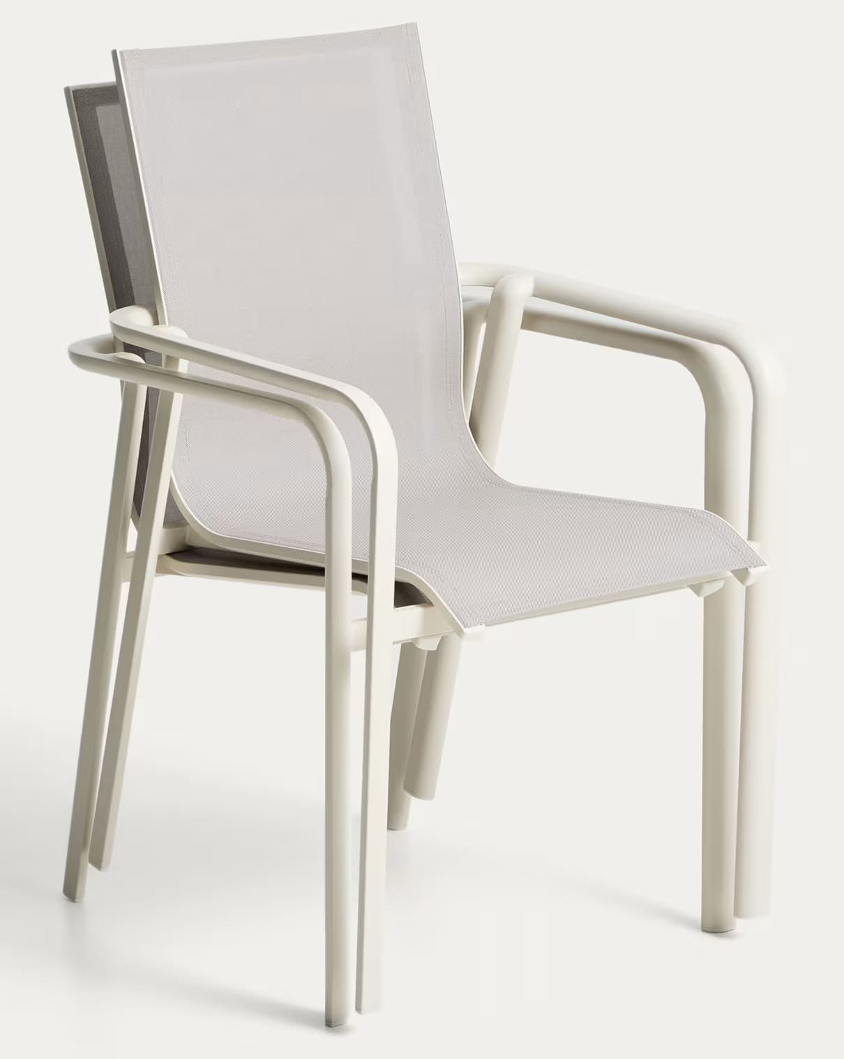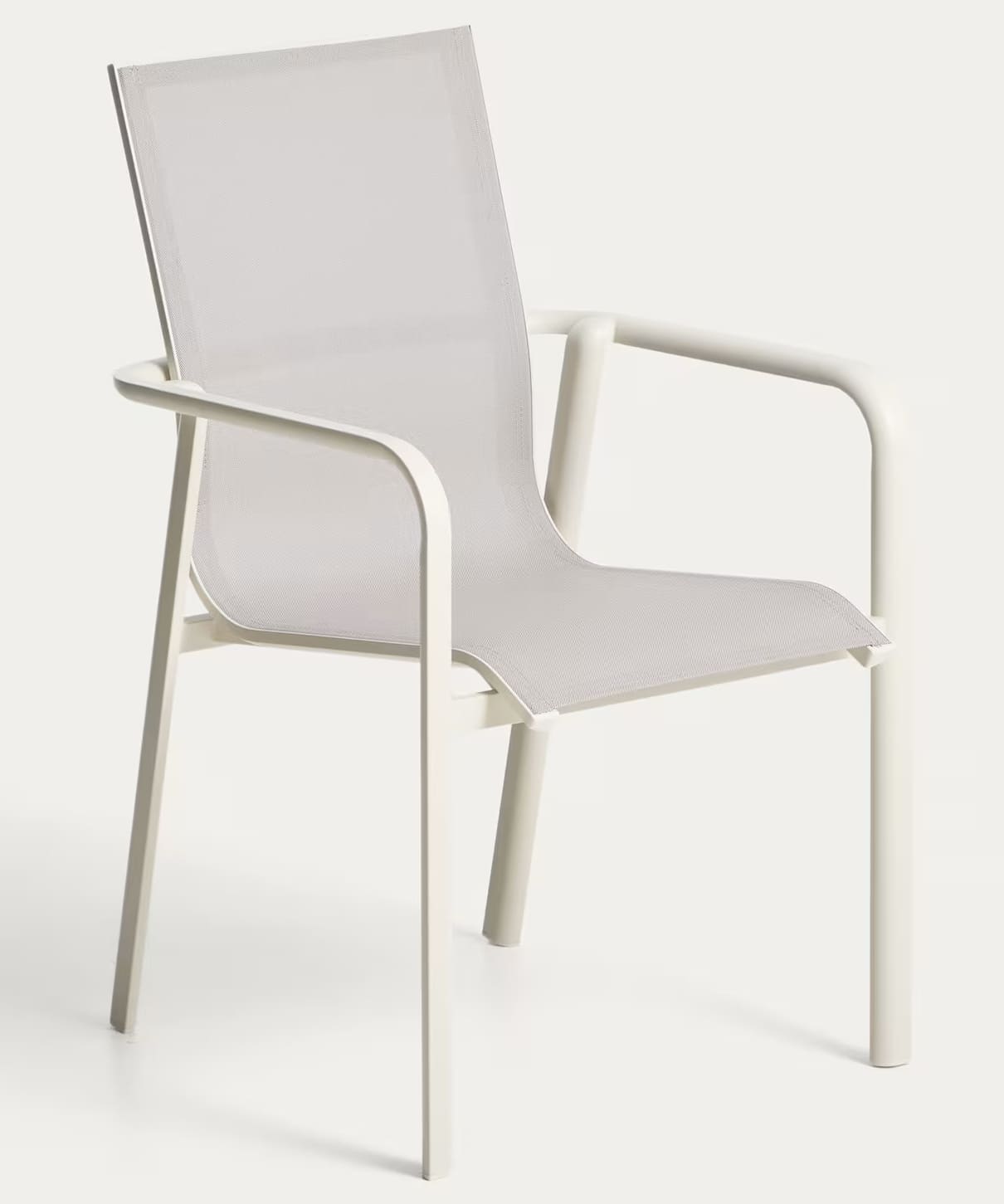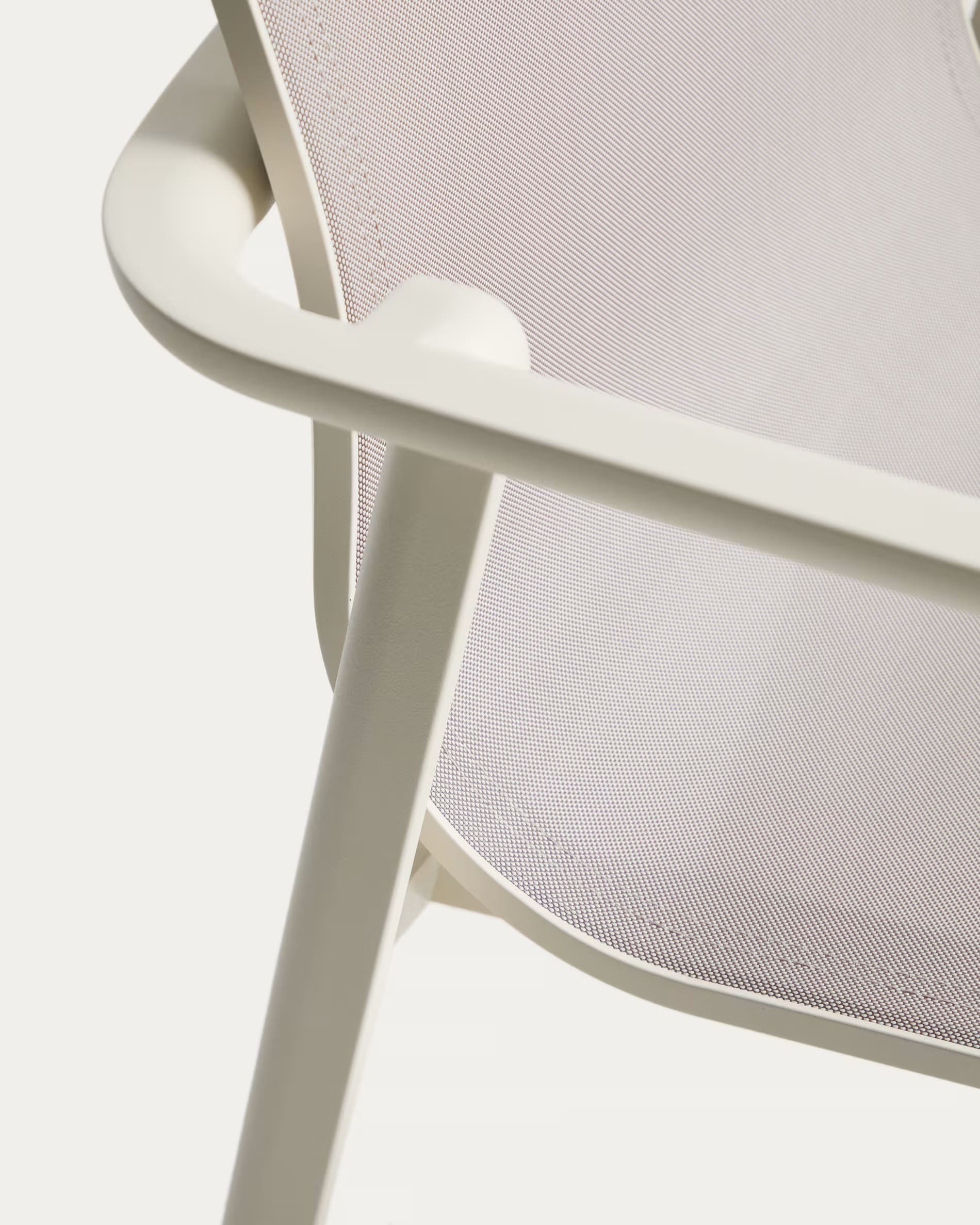 Современный уличный стул Canea от Kave Home — это практичное и универсальное решение для террасы, балкона, сада, кухни или ресторана. Легкий алюминиевый каркас в сочетании с сиденьем и спинкой из texteline обеспечивает комфорт, прочность и современный внешний вид.