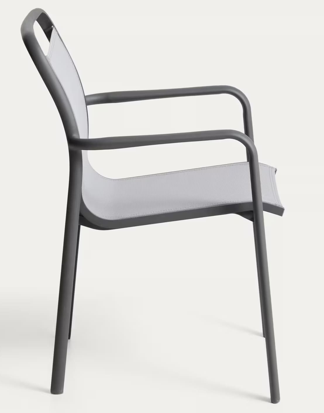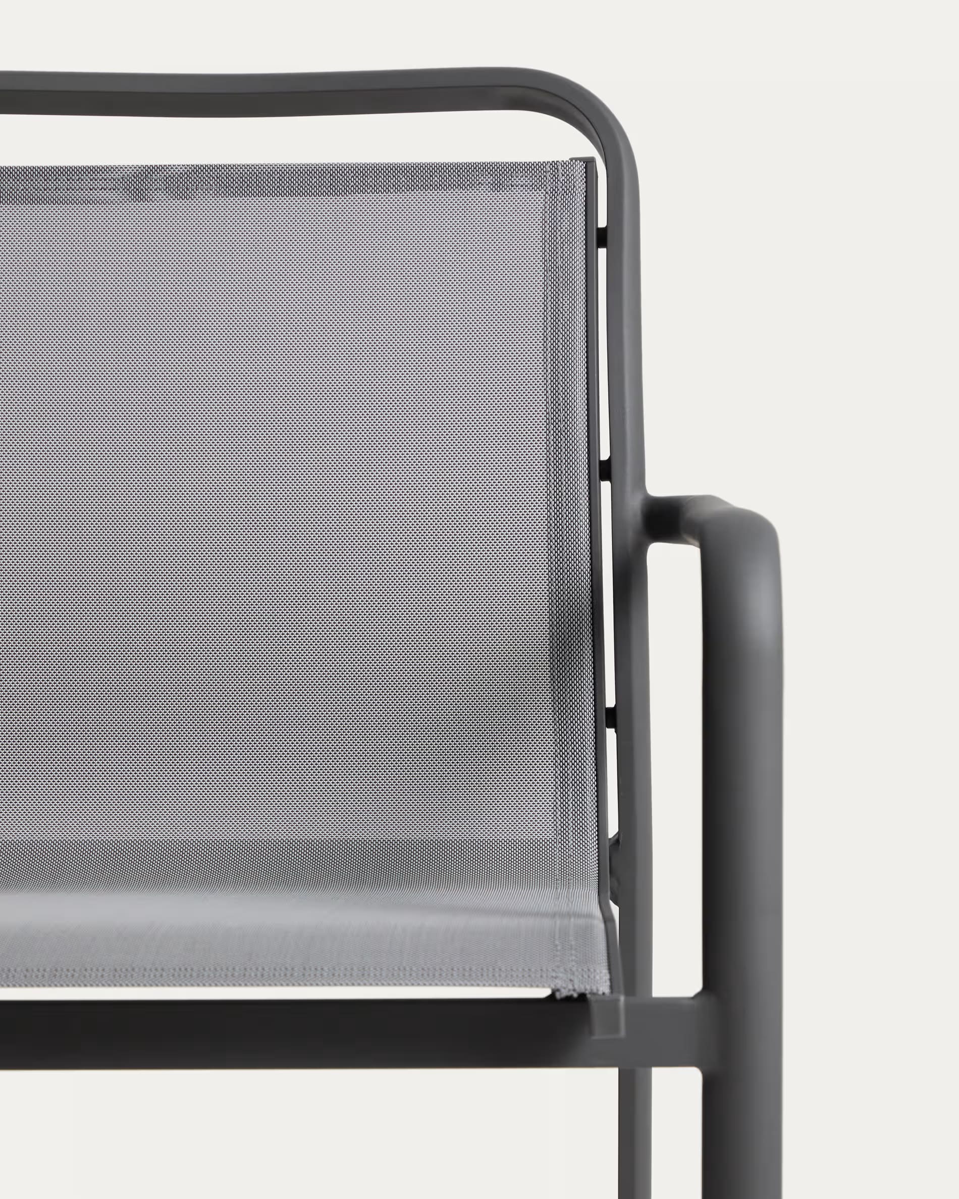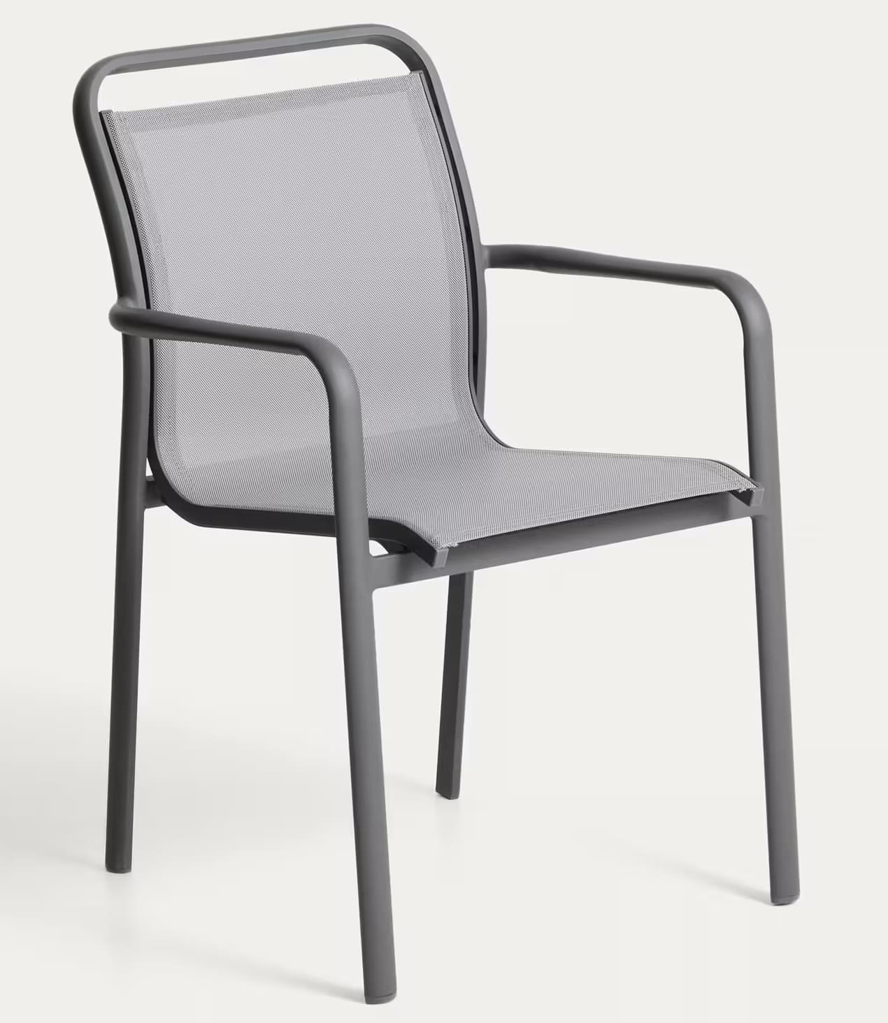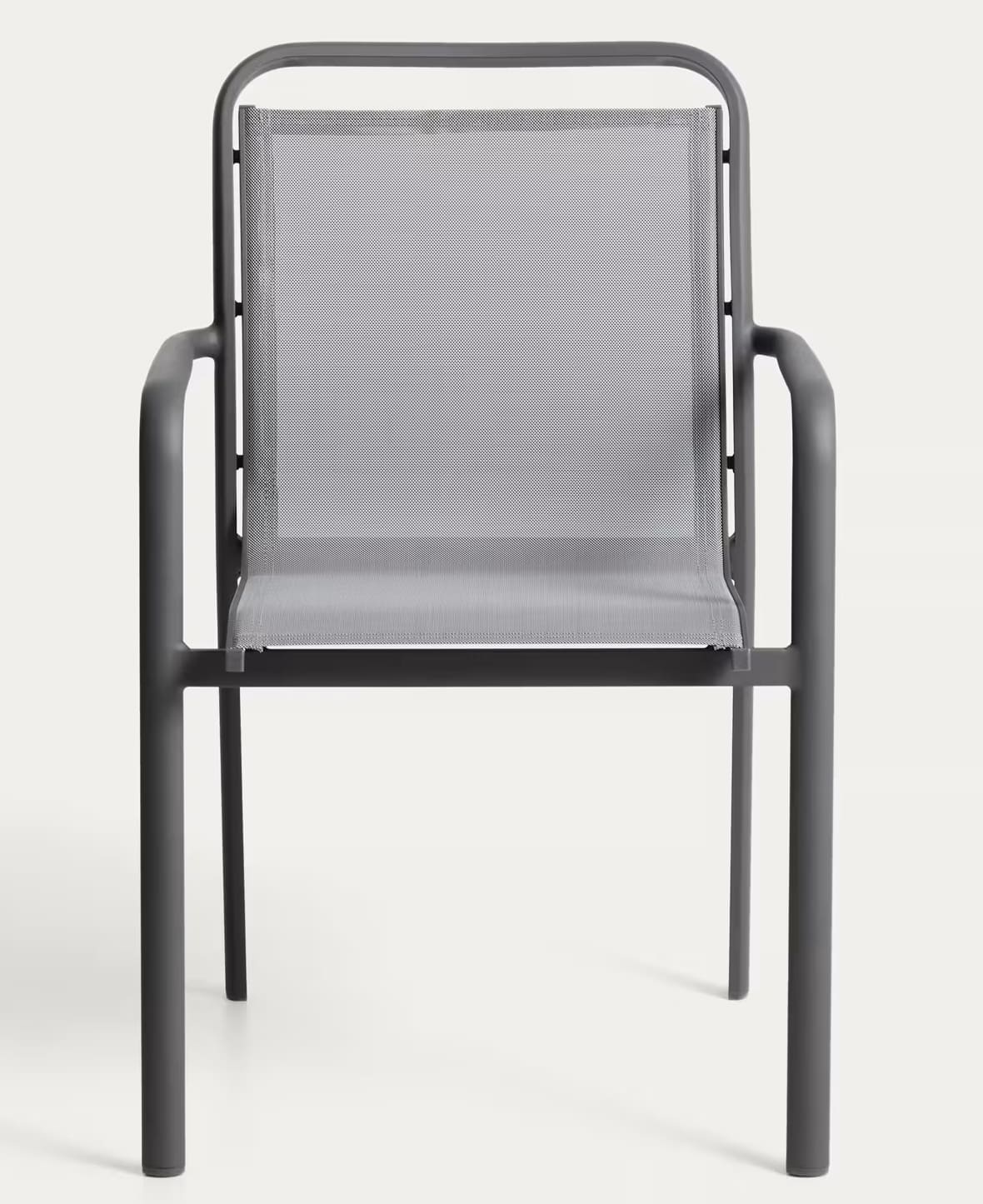 Современный уличный стул Luri от Kave Home — это практичное и универсальное решение для террасы, балкона, сада, кухни или ресторана. Легкий алюминиевый каркас в сочетании с сиденьем и спинкой из texteline обеспечивает комфорт, прочность и современный внешний вид.
