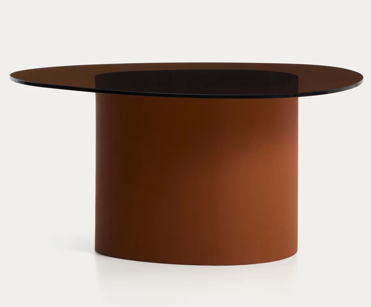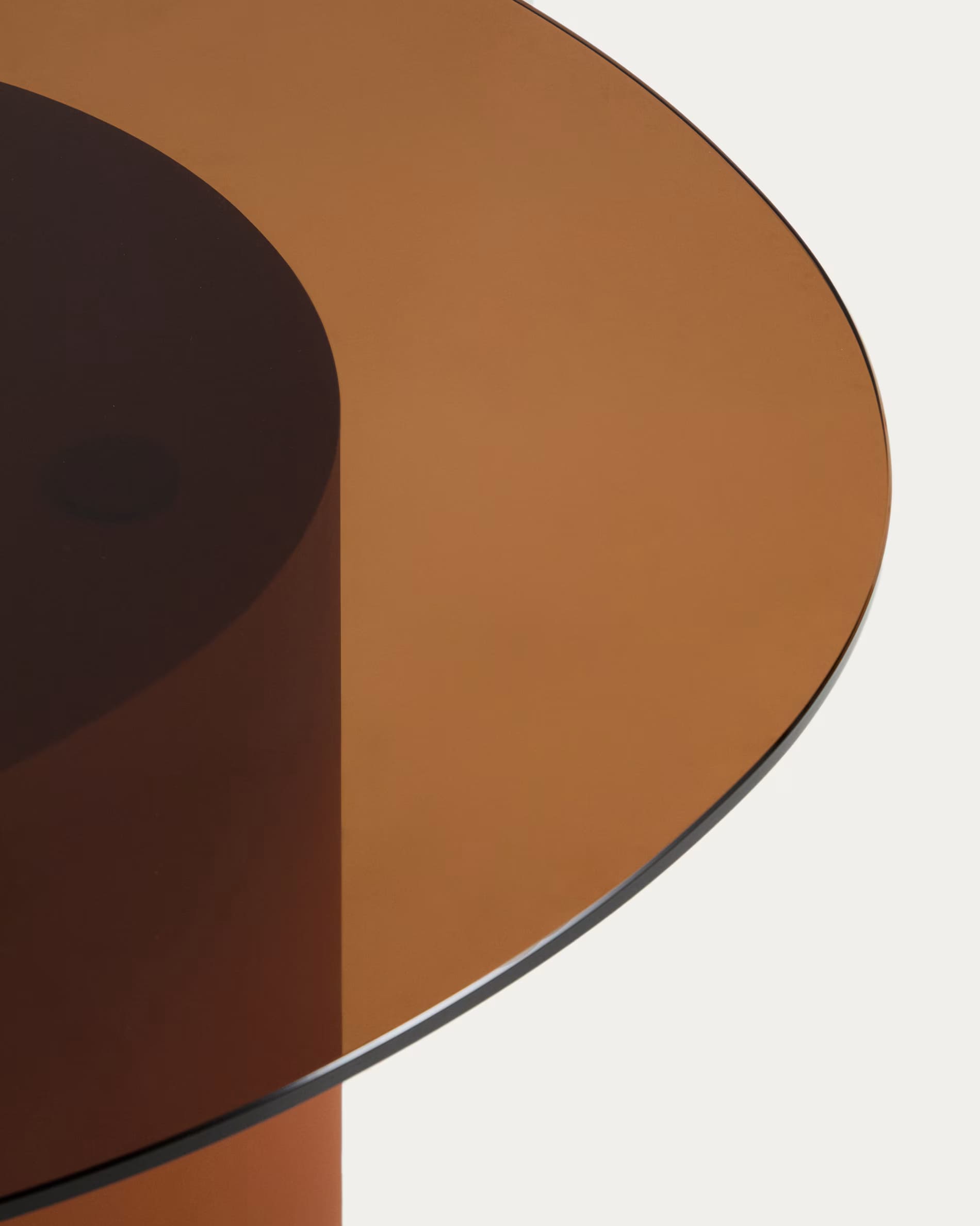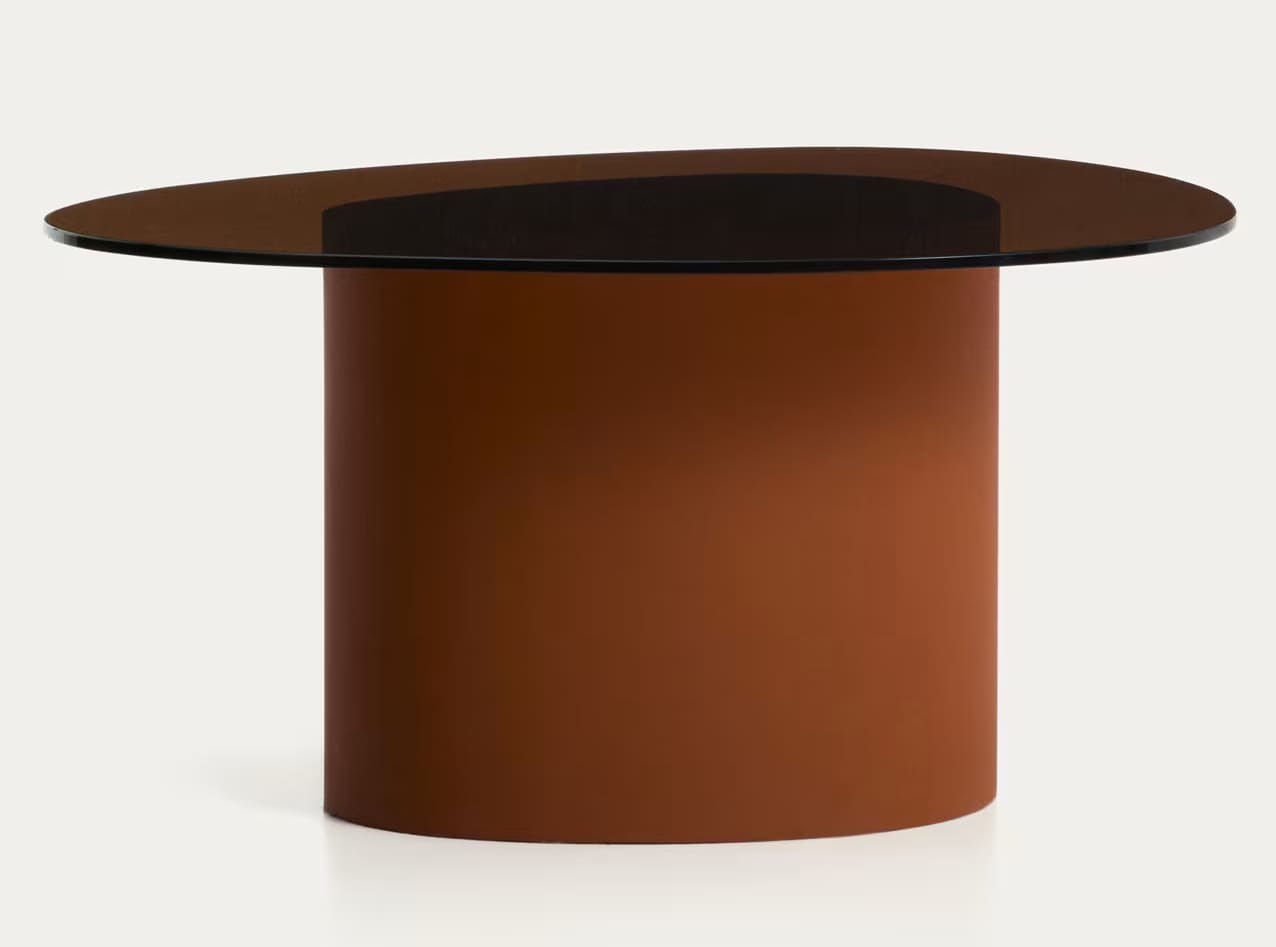 Столик сочетает прочный металлический каркас с защитным покрытием и столешницу из закаленного стекла с легким затемнением. Скульптурная форма основания придает дизайну выразительность, а стекло визуально облегчает пространство и пропускает свет.